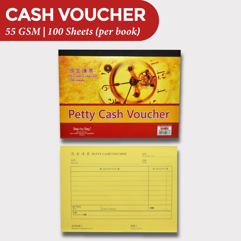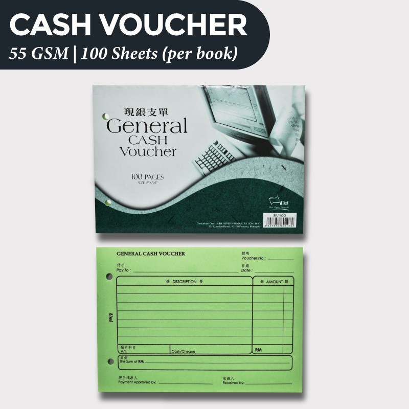 Cash Voucher NCR 1 PLY 100 Sheet 100 Page Carbonless Petty Cash Voucher // General Cash Voucher 55 GSM