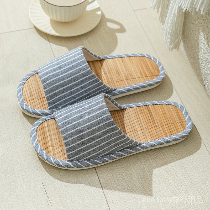 Cash commodity and quick delivery Summer Bamboo Slippers Women's Interior Home Japanese-Style Floor Slippers Couple Vertical Stripes Bamboo Woven Linen Slippers XC99