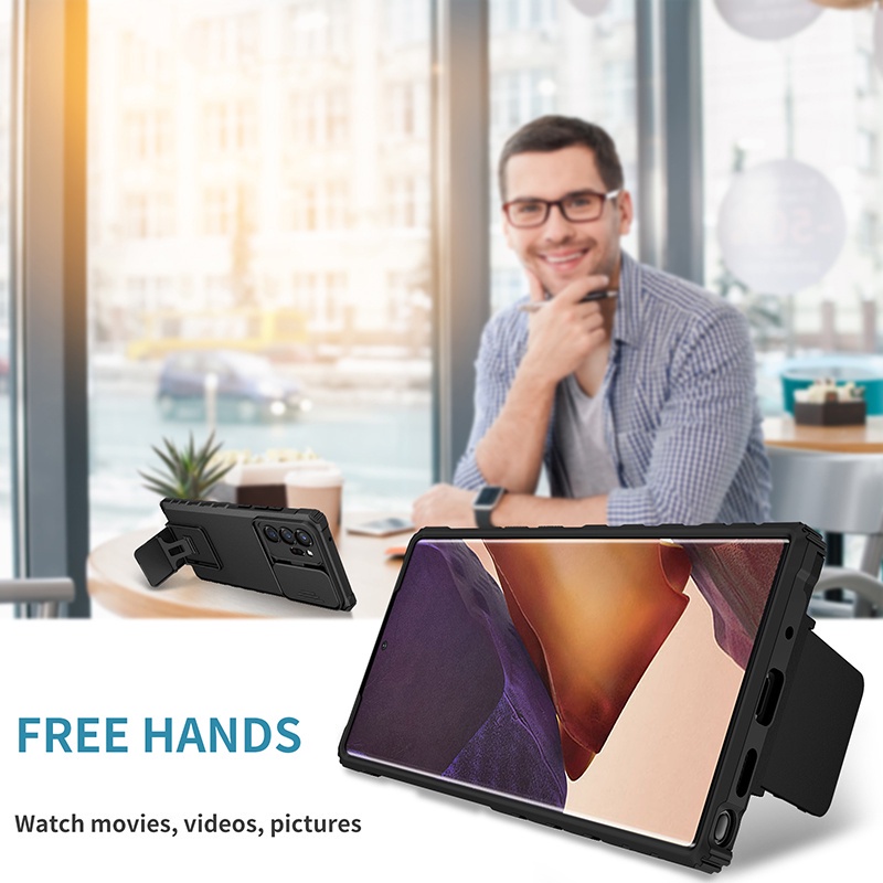 Casing For Samsung Galaxy Note 20 / Note 20 Ultra 5G Shockproof Case Push Pull Camera Protection Stand Cover