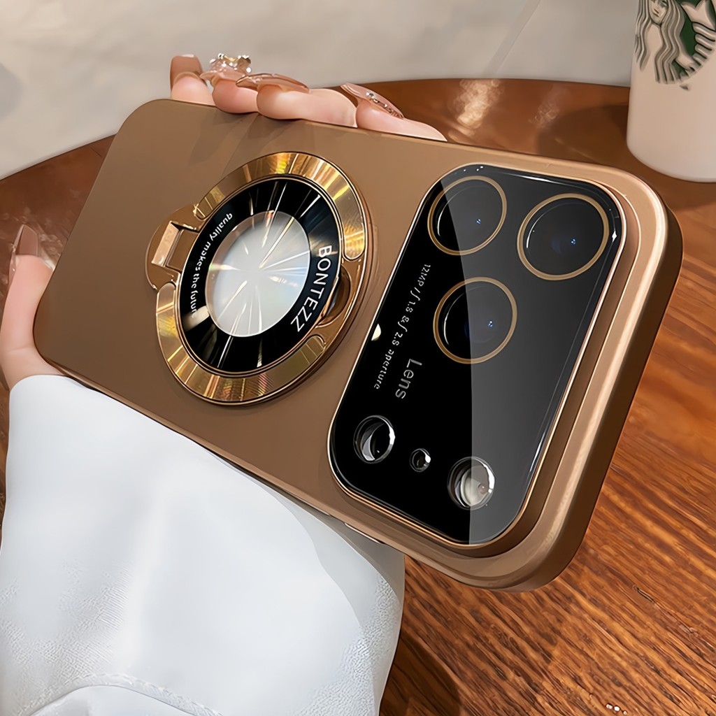 Casing Luxury PC Matte Phone Case With Built-in stand Shockproof Hard Case For iPhone 17 16 15 14 13 12 11 Pro Max plus Air Lens Protector Case Blue Cover Stand