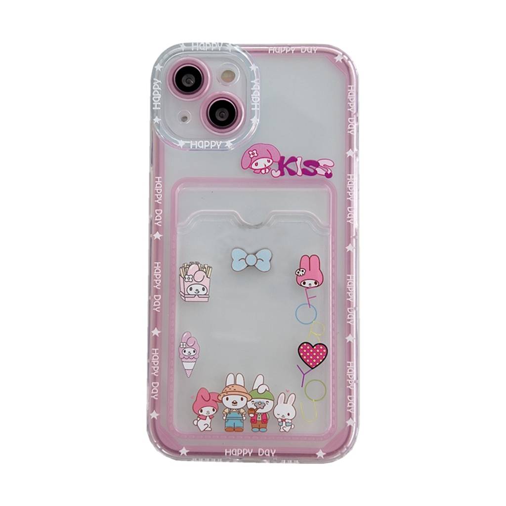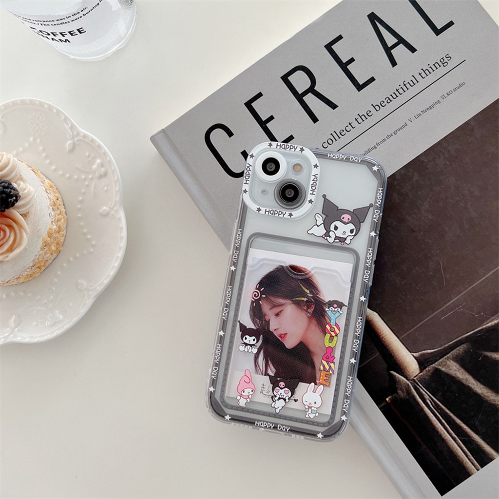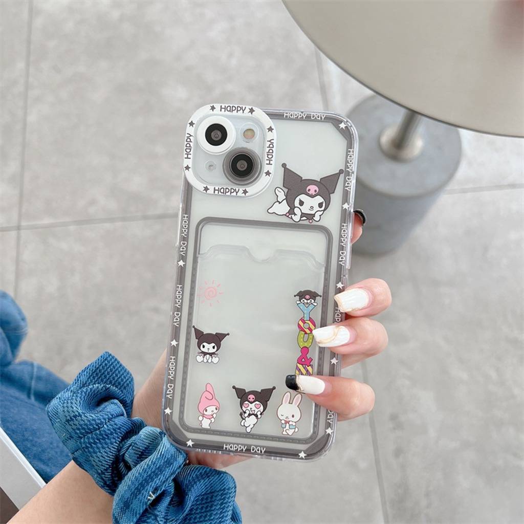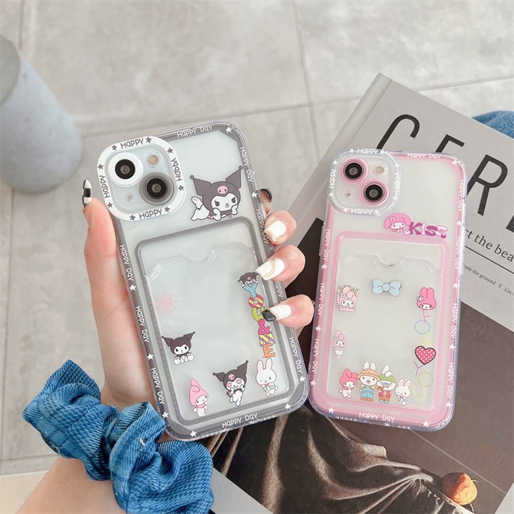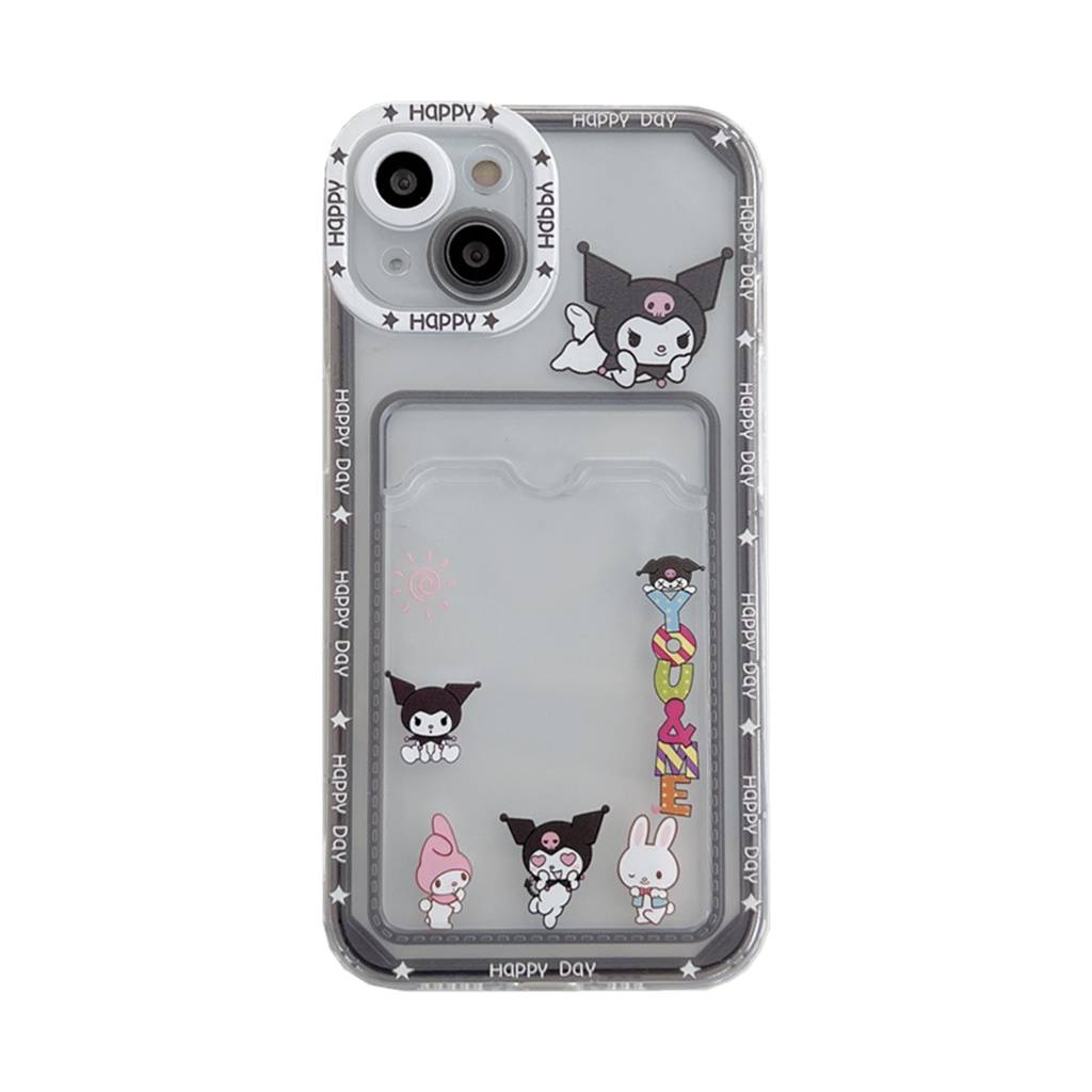 Casing for iPhone 11 15 14 13 Pro Max Lovely Cartoon Kuromi Melody Pattern Girly Shockproof TPU Phone Case with Card Holder Photo Slot Protective Soft Cover for 12Pro