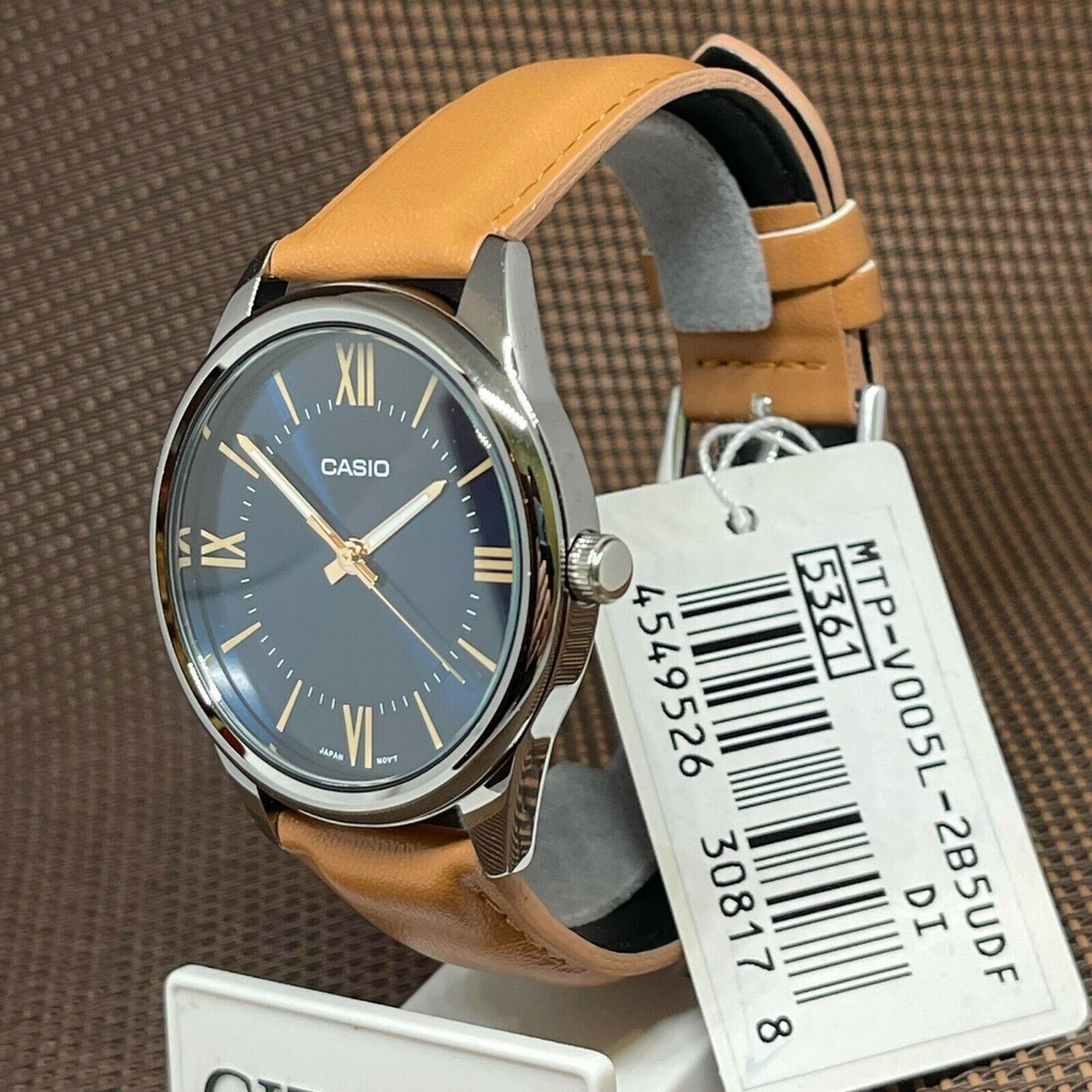 Casio MTP-V005L-2B5 Standard Analog Brown Leather Strap Men's Dress Watch