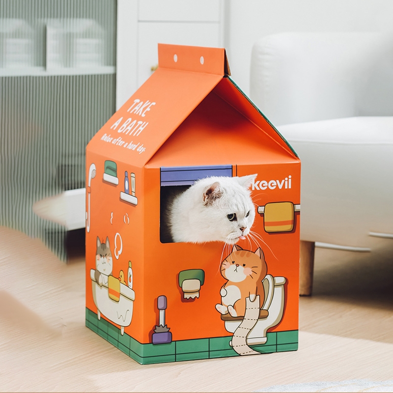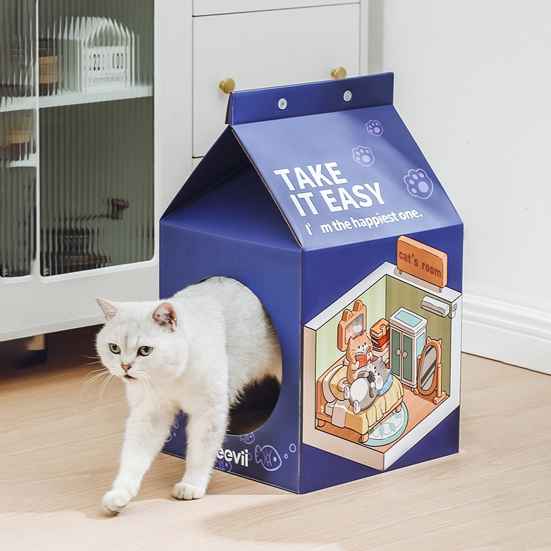 Cat House DIY Cat Scratcher House Cat Scratch Board Milk Box Sleeping Bed