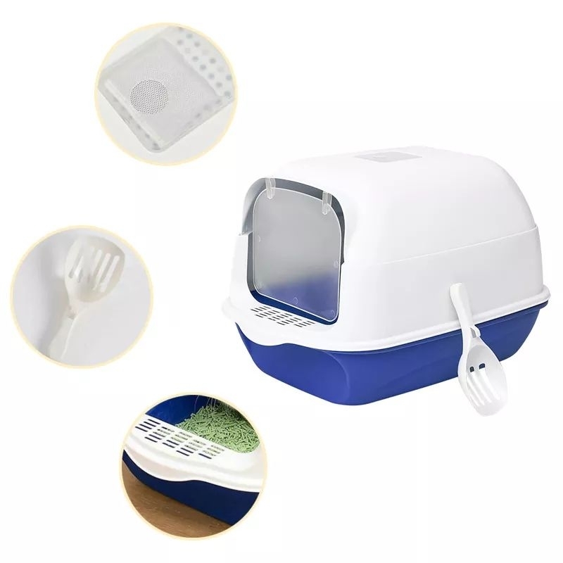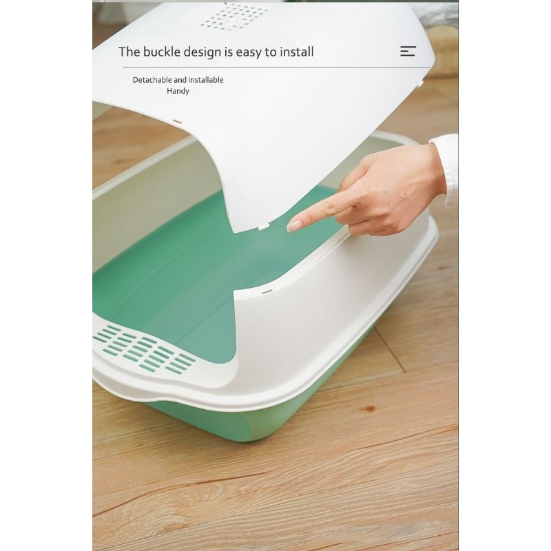 Cat Litter Box Fully Enclosed Reusable Easy Tidy Heightened Fence with Door Tray Large Toilet Kitty Rabbit Outdoor Pet