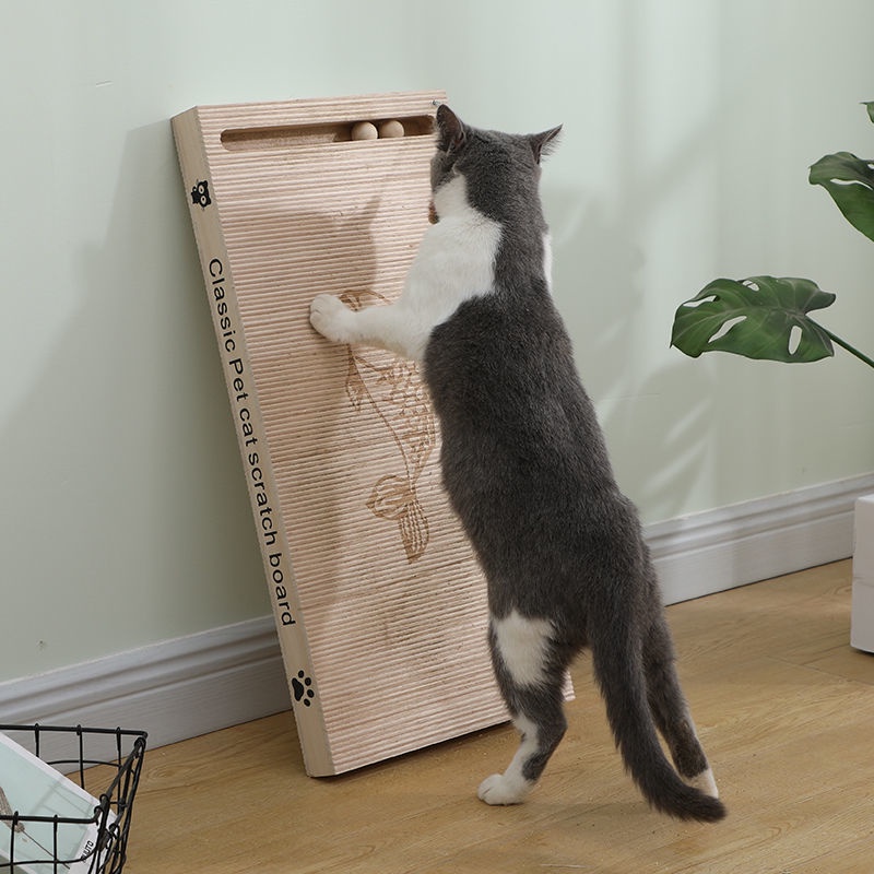 Cat Scratch Board Vertical Wear-Resistant Non-Chip Scratching Board Solid Wood Extra Large Funny Cat/Wooden cat scratch board bed