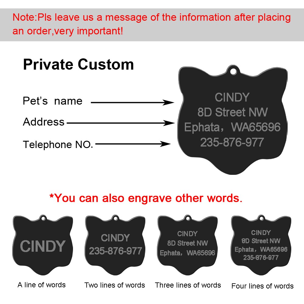 Cat Tag Engraved Disc 25mm Cat Face Personalized Cat Kitten ID Name Collar Tags