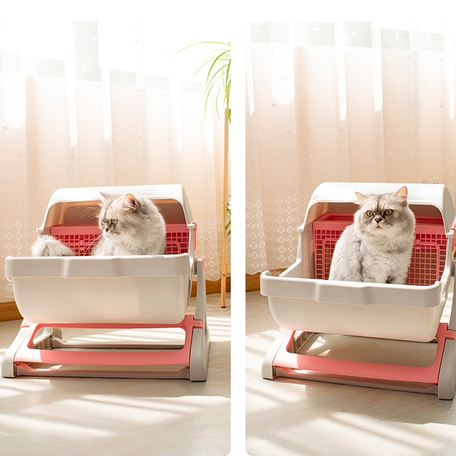 Cat Toilet Extra Large Semi-Automatic Pet Semi-Enclosed Litter Box Semi Automatic ( Semi Auto ) Quick Cleaning Luxury Cat Litter Box / Pan