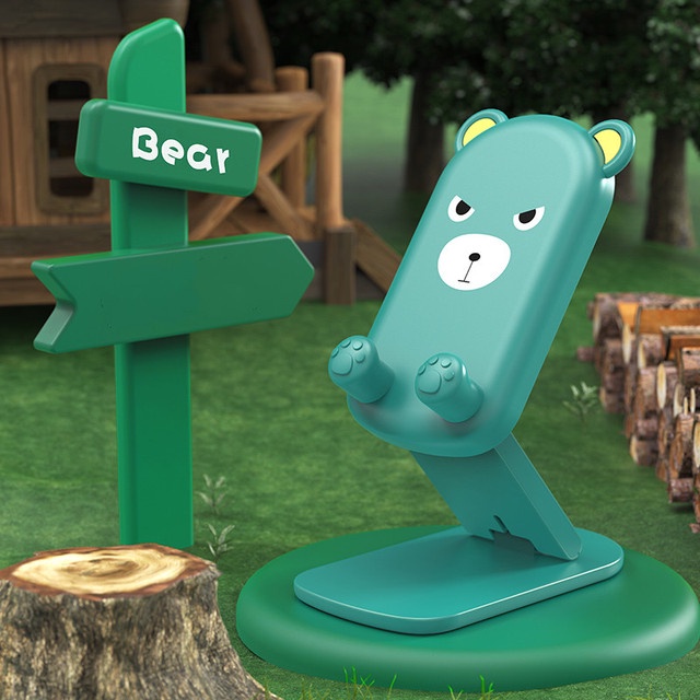 Cell Phone Stand Cute Cartoon Bear Portable Foldable Lifting Mobile Phone Stand Desktop Cellphone Holder