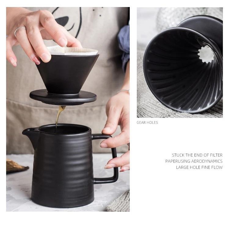 Ceramic Coffee Dripper 1-2 Cups Coffee Drip Filter Pot Permanent Pour Over Coffee Maker with Separate Stand for Filte 400ml