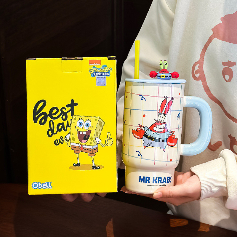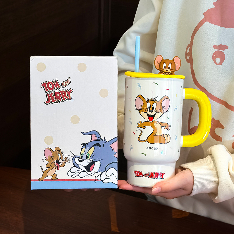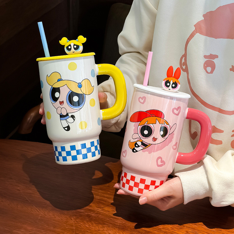 Ceramic Mug Powerpuff Girls Series with Lid High-value Cartoon Cute Water Cup with Straw [850ml]
