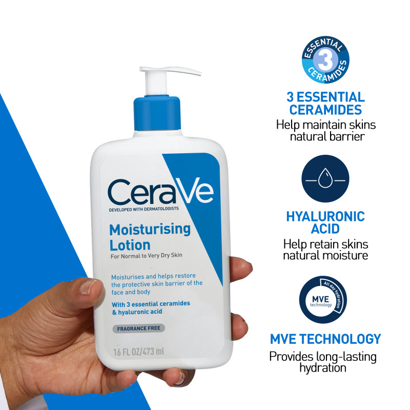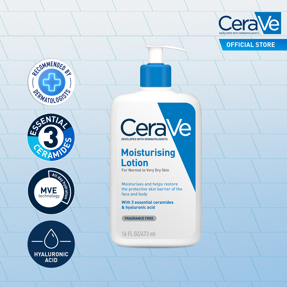 Cerave Daily Moisturizing Lotion for Normal to Dry Skin with 3 Essential Ceramides ,Oil-free with Hyaluronic Acid 473ml