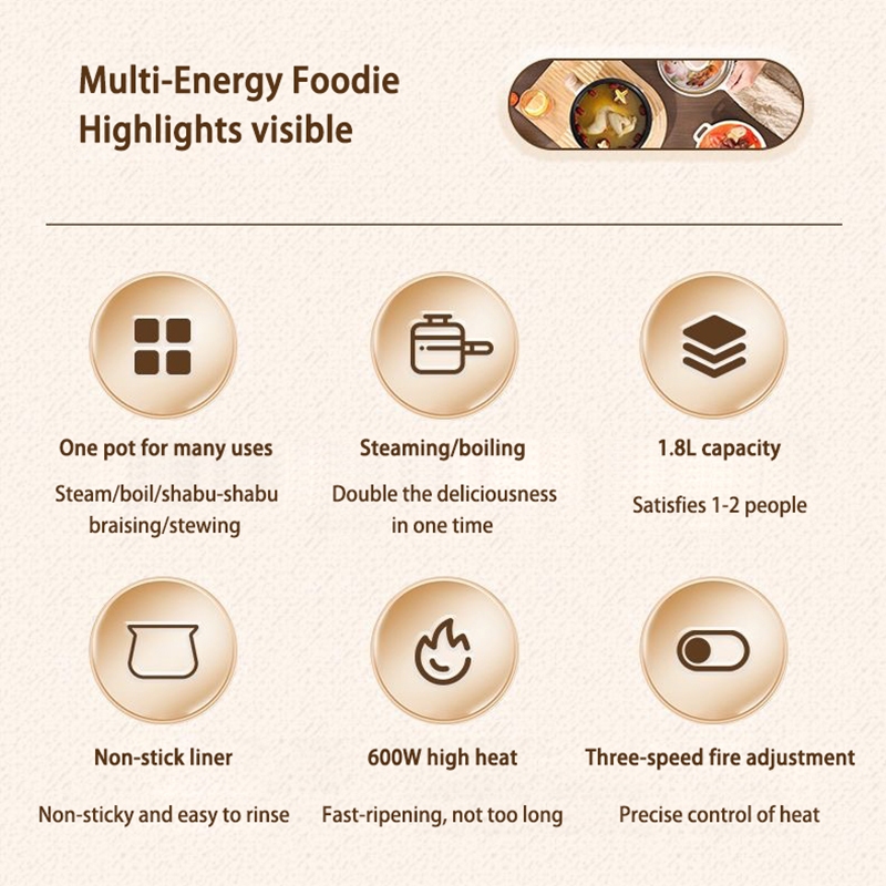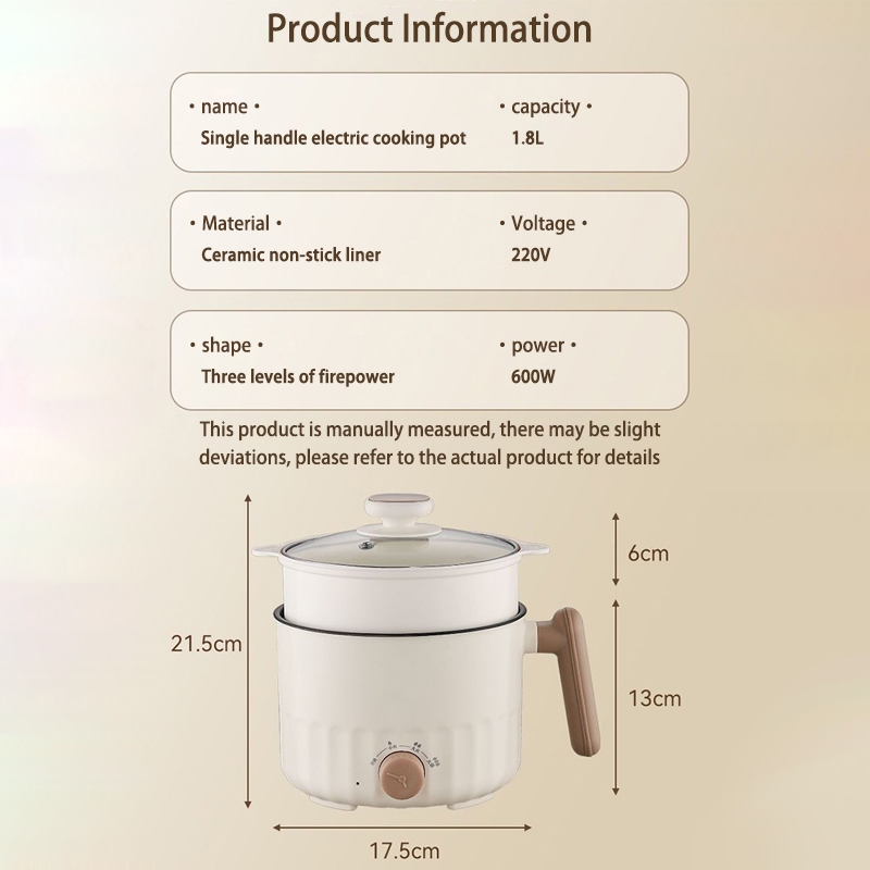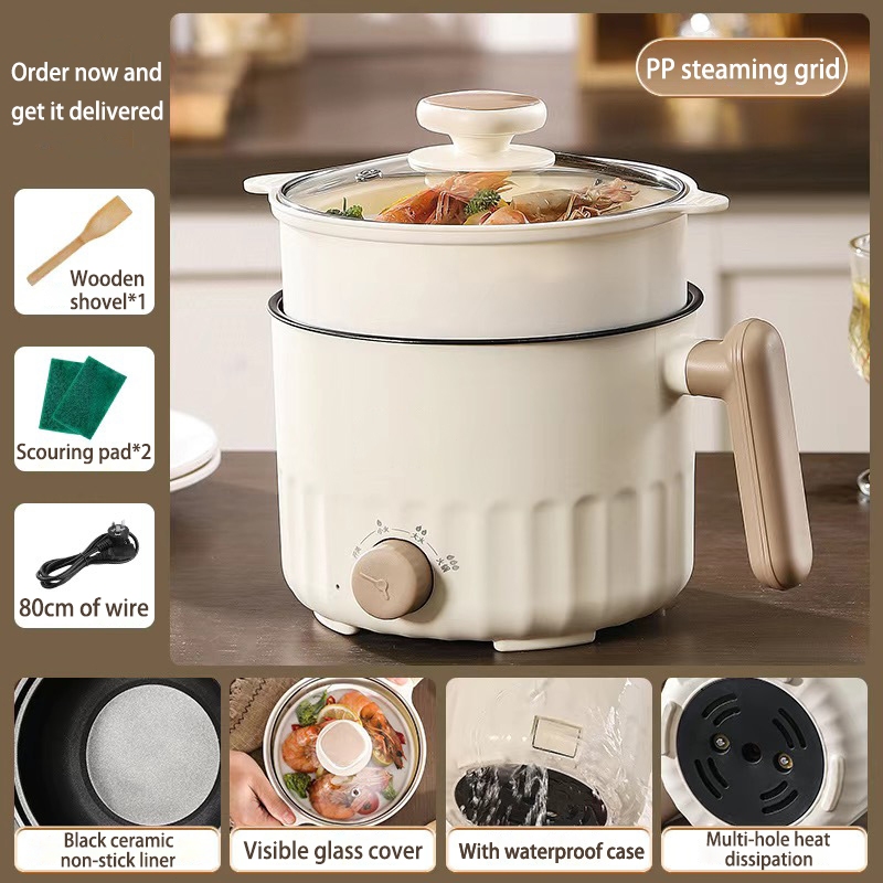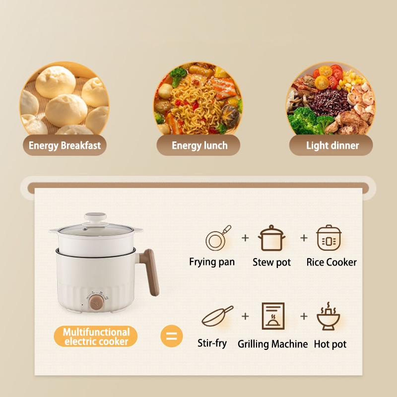 1.8L MultiFunction Cooker Mini Ceramic Non Stick liner Small Rice Cooker Hotpot Steamboat Noodle电煮锅with Steamer 3-pin SG