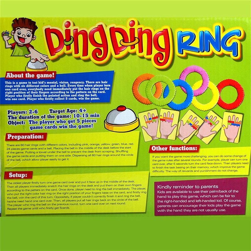 Challenge Ring Ding Toy Family Party Games Great Practical Gadgets For 2-6 players with 24 picture cards 60 Hair 1 Bell