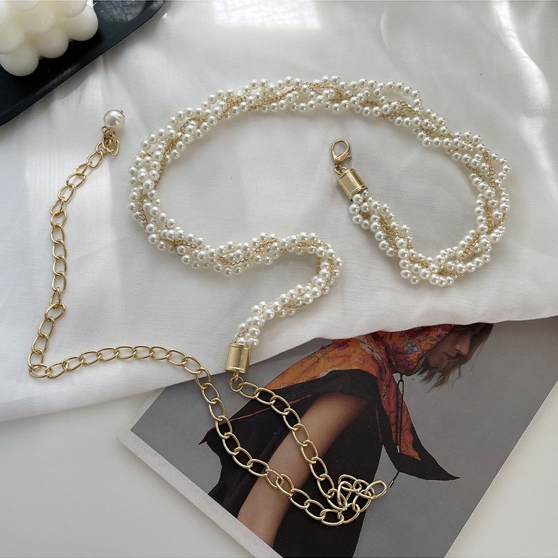 Chic Spiral Shape Pearls String Women Waist Chain Casual Gold Chain Hook Buckle Ladies Waist Belts Female Dress Sweater Accessories