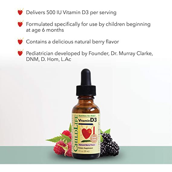 ChildLife Vitamin D3, Vitamin D Drops for Kids, Supports Immune, Heart & Bone Health, Gluten Free, 1 fl oz (30 ml)