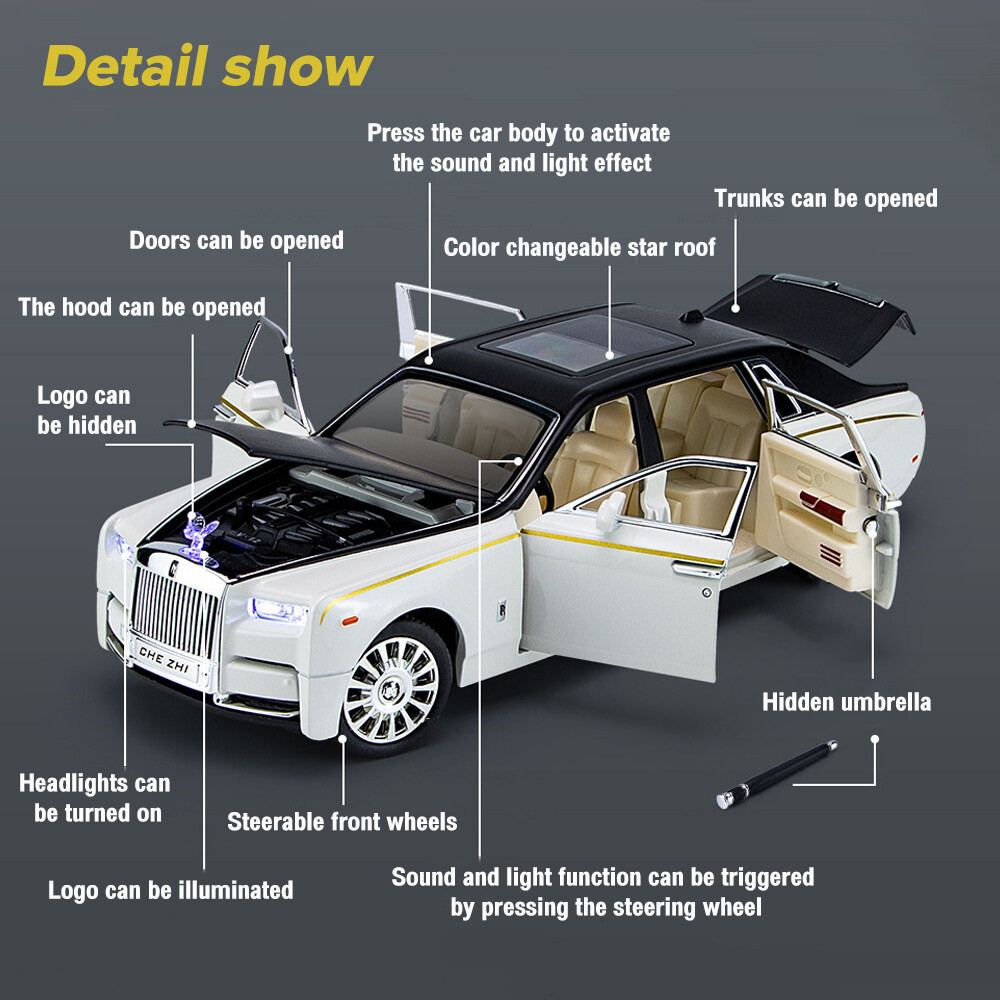 Children's Toy Cars Rolls-Royce Phantom Model Car With Sliding Doors With Sound And Lights Very Big Movable Wheels For Toys