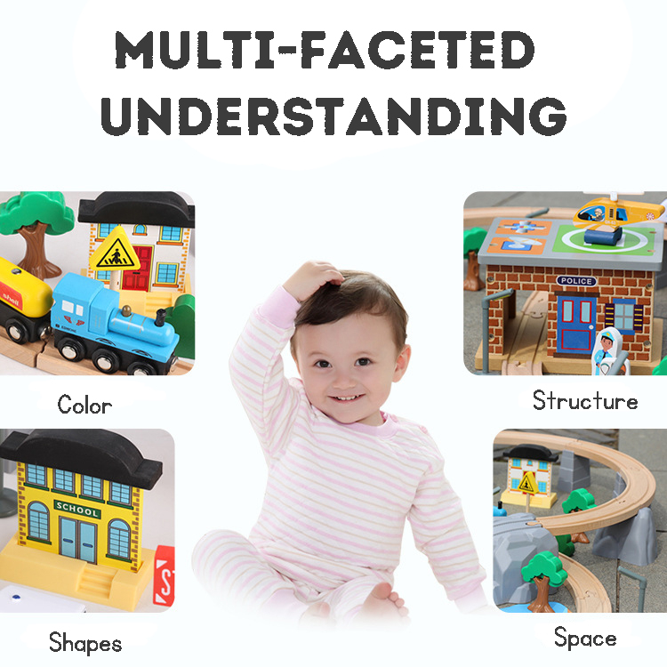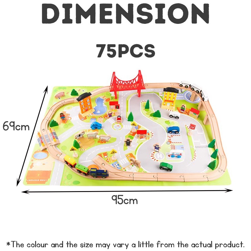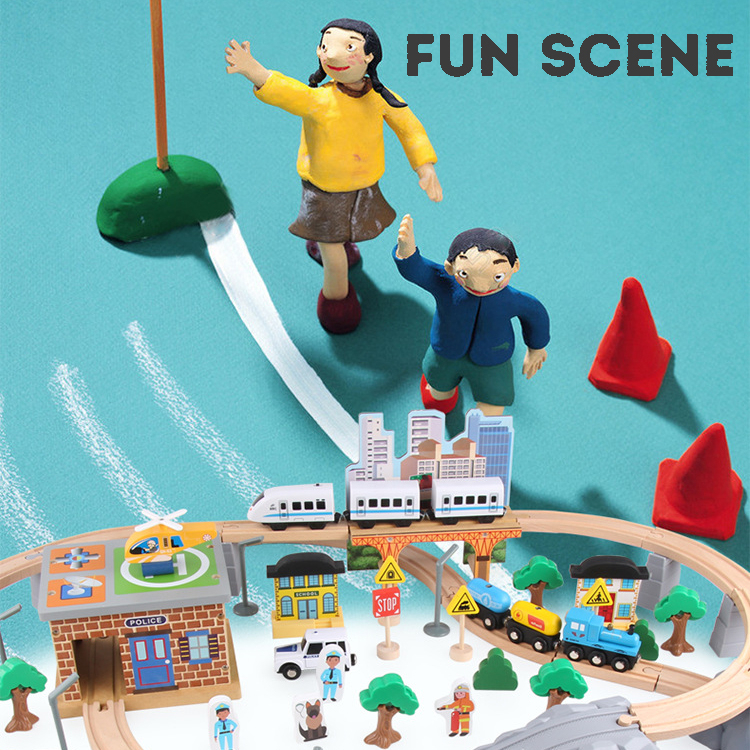 Children's Wooden Toy Train Track Set kids train track toy Virtual Traffic City