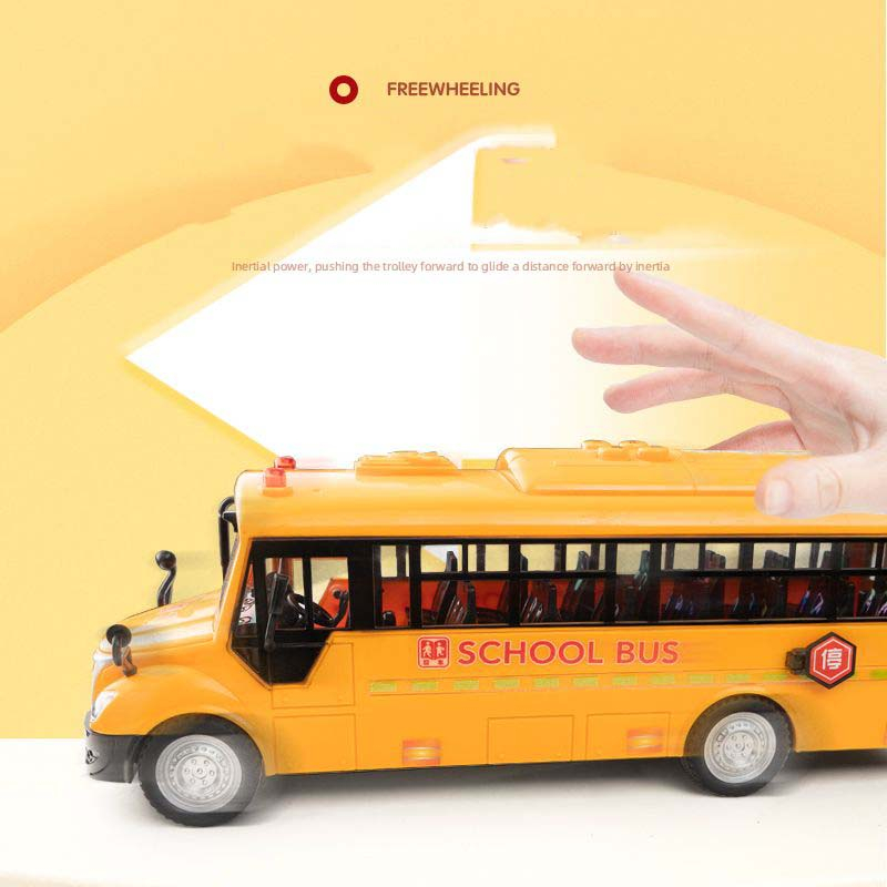 Children Sound& Light & Music School Bus Toy Boys Girls Simulation Inertial Car School Bus Can Open Door