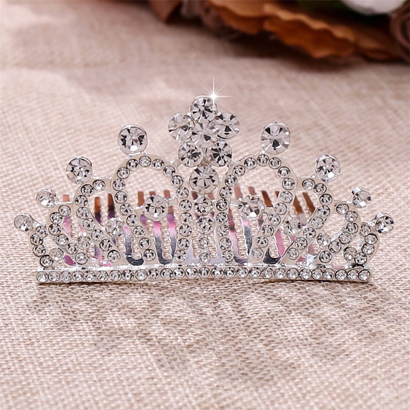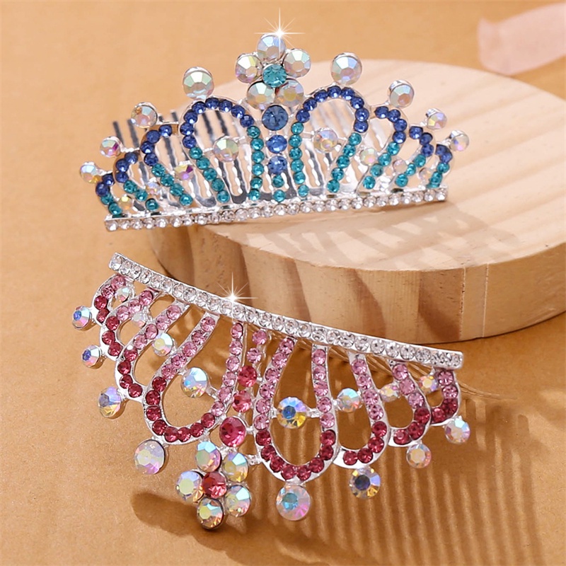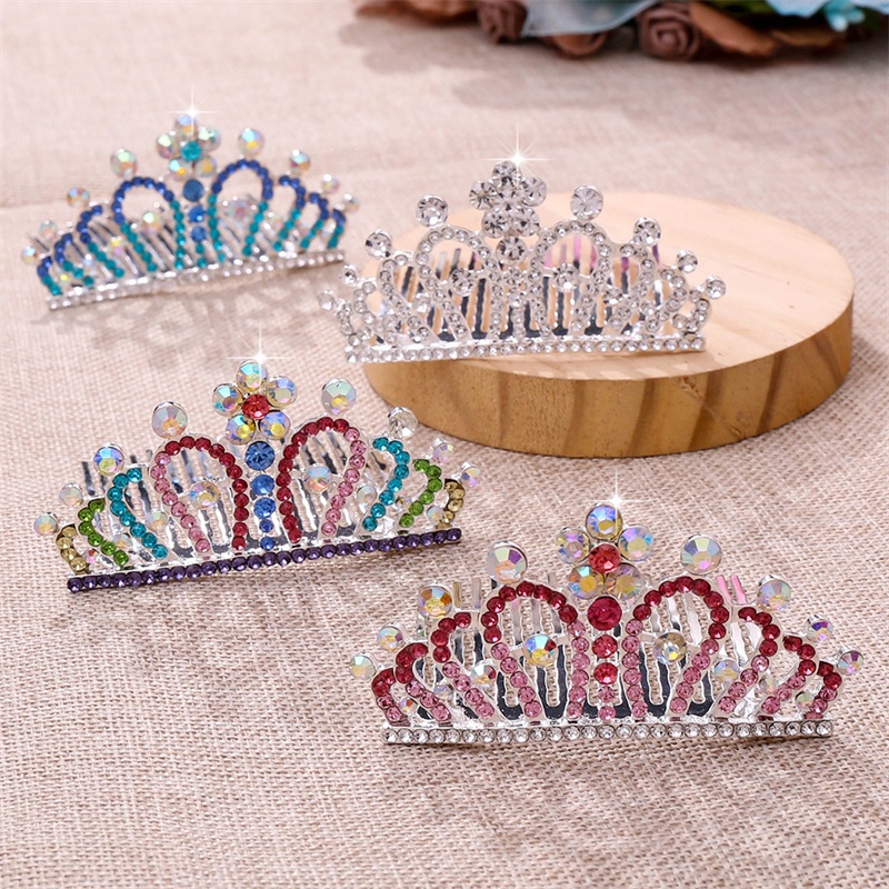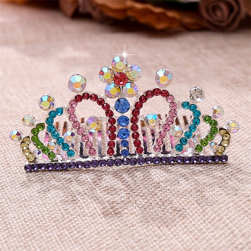Children Tiaras Crowns Baby Girls Birthday Party Show Colorful Rhinestone Crystal Hair Comb Crown Princess Headwear