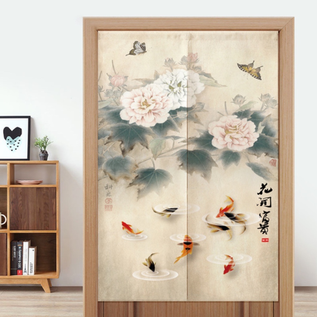 Chinese Door Curtain Nine Fish Pattern Hanging Curtain Bedroom Half Curtain Toilet Partition Curtain Feng Shui Curtain Noren