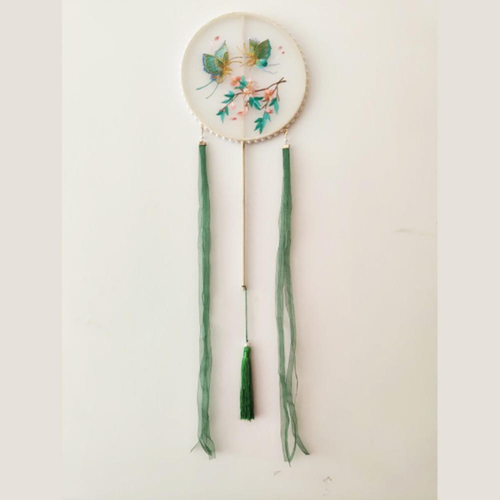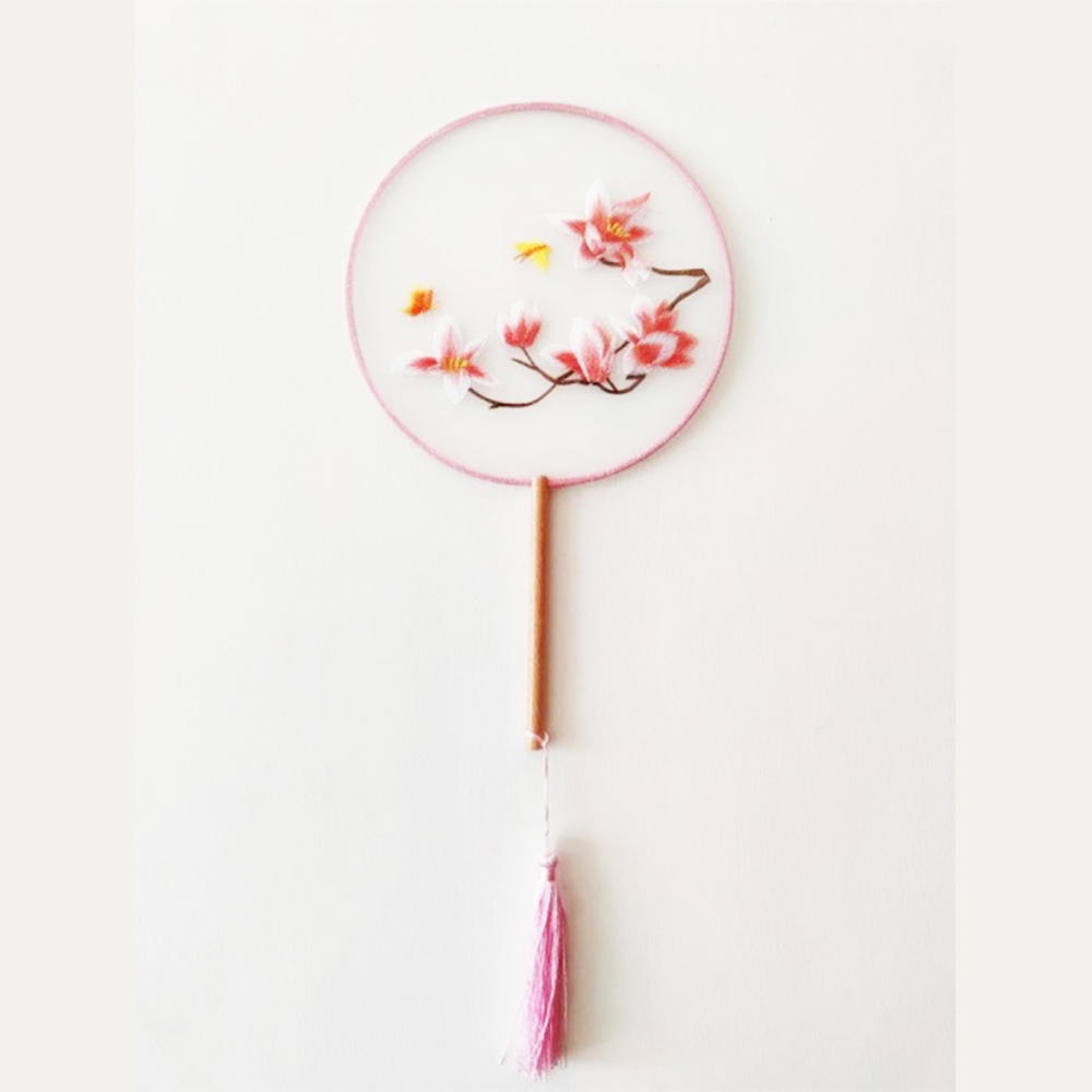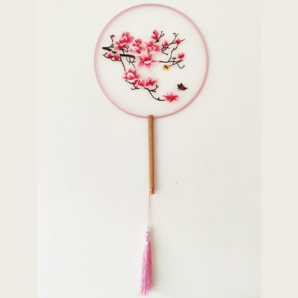 Chinese Fan Embroidery Hand Circular Fan, China Han Ancient Dance Translucent Silk Round Fan