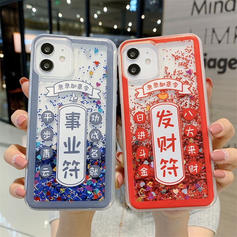 Chinese New Year Rich Lucky Case For iPhone 15 14 12 11 13 Pro Max Mini XS XR X 7 8 Plus Shiny Liquid Quicksand Cover