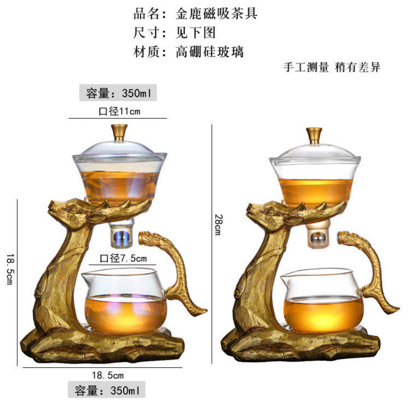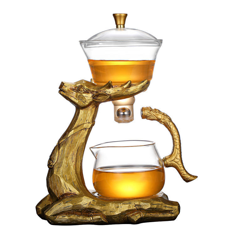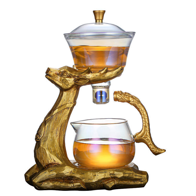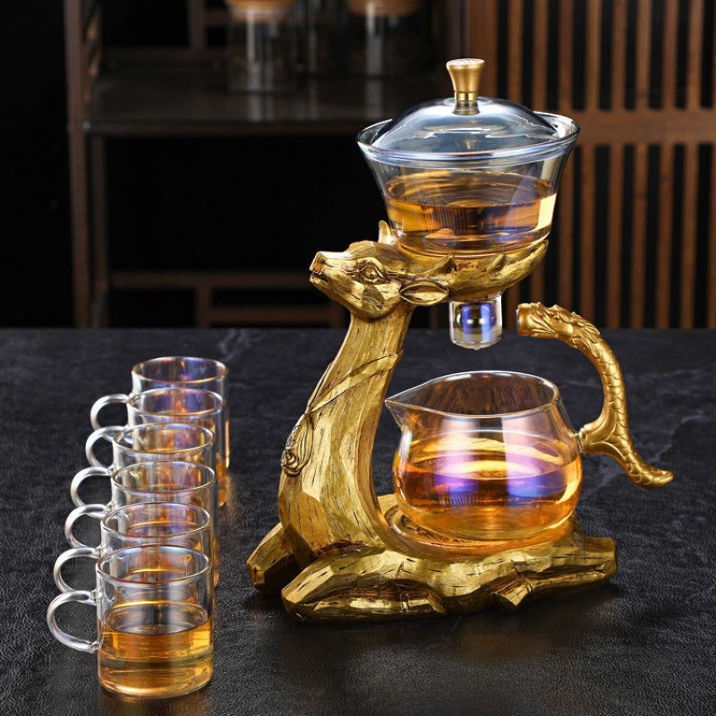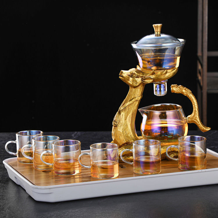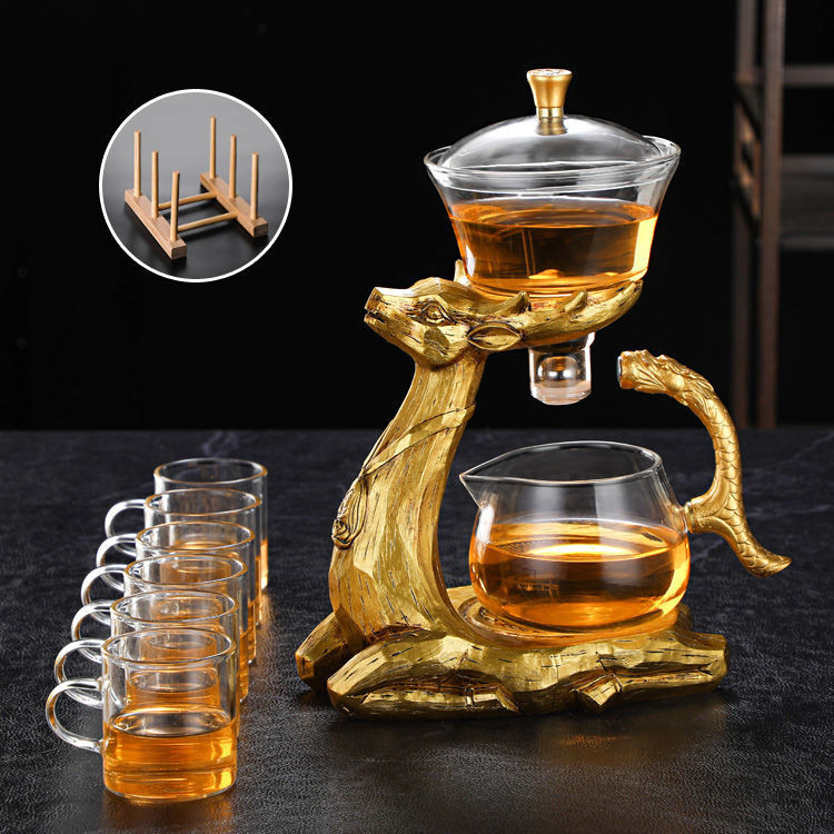 Chinese Tea Set Office Tea Set Glass Tea Set Lucky Golden Deer Creative Tea Set Glass Semi-Automatic Lazy Tea Set Teapot Set Kung Fu Tea Set Teapot Teacup Household Teapot Set Tea Set Gift