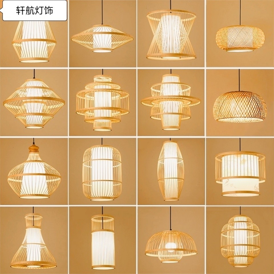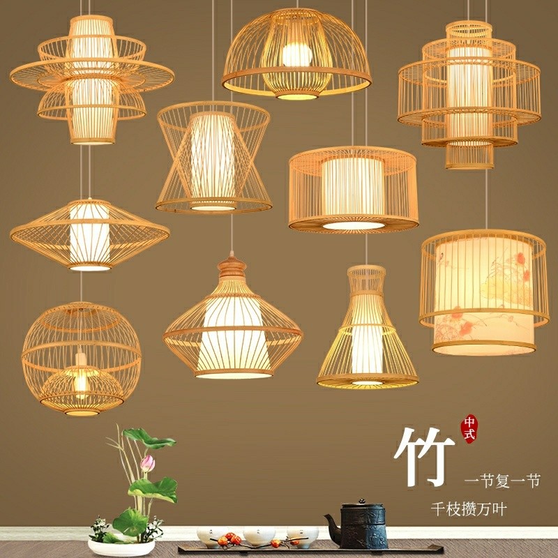 Chinese style lantern Japanese style E27 bamboo Pendant Light LED restaurant hotel bar Hanging Lights chandelier commercial retro ceiling lamp