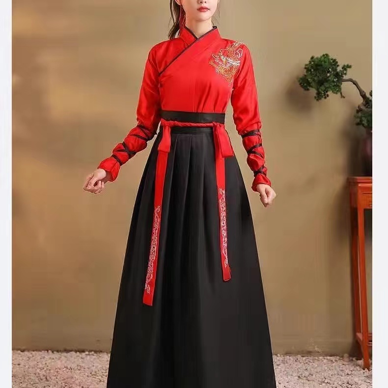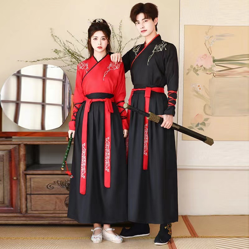Chinese style men's and women's martial arts costume graduation photo improved ancient costume Hanfu student couple dress class suit set
