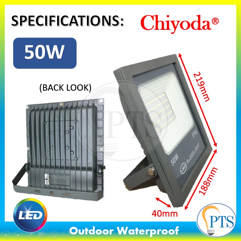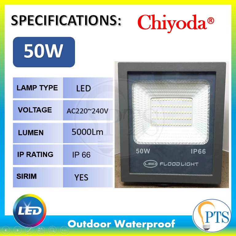 Chiyoda 50W LED LED Floodlight SportLight Outdoor IP66 DAYLIGHT 6500K Lampu Spot light