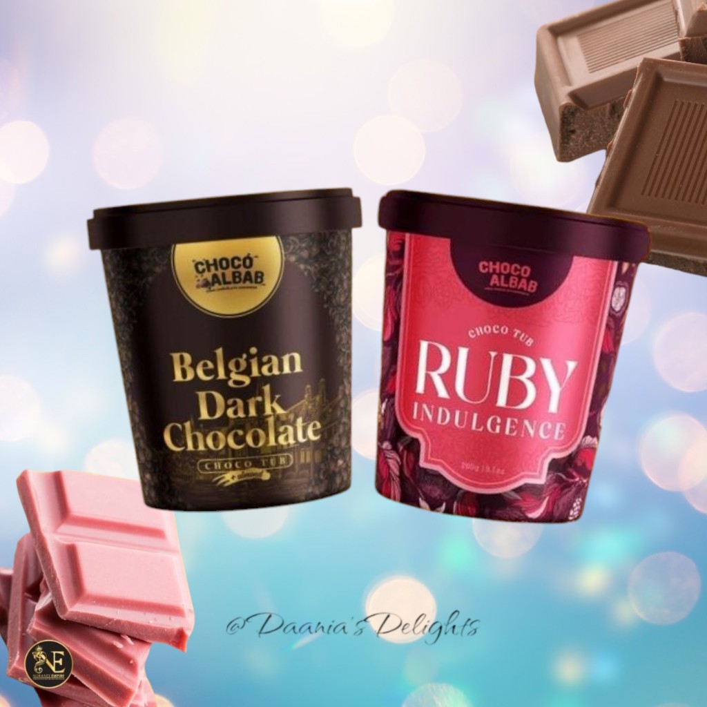 Choco Albab Chocolate tubs | Cookies | Unicorn Strawberry Chocolate | Belgian Dark Chocolate bulk buy in cartons