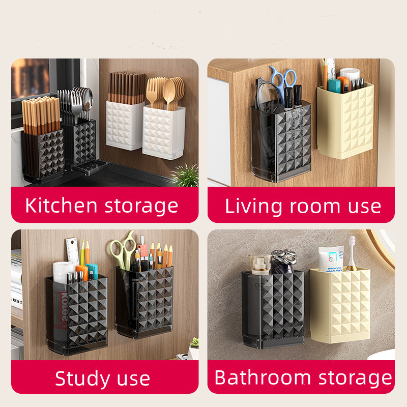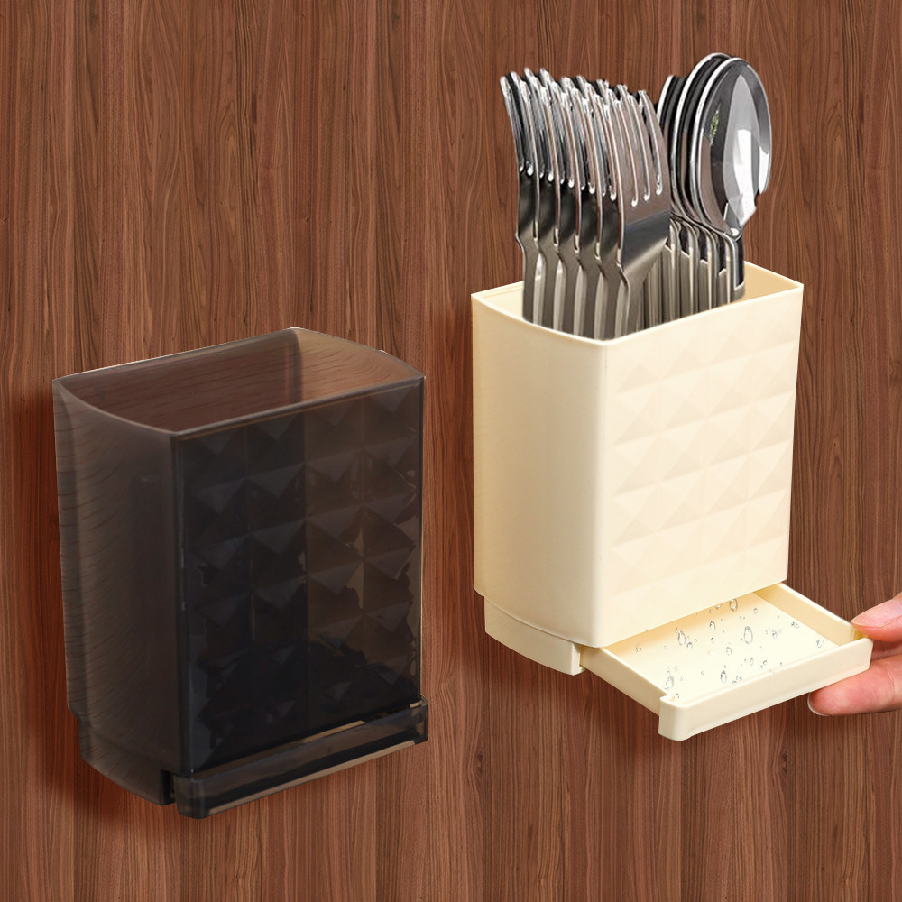 Chopstick Storage Box - Kitchen Utensil Rack - Freestanding Draining Chopstick Holder - for Toothbrushes or Kitchen Tools - Plastic, Multifunctional, Wall-Mounted