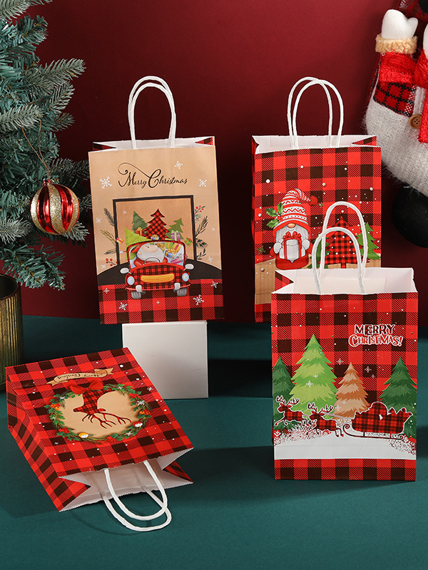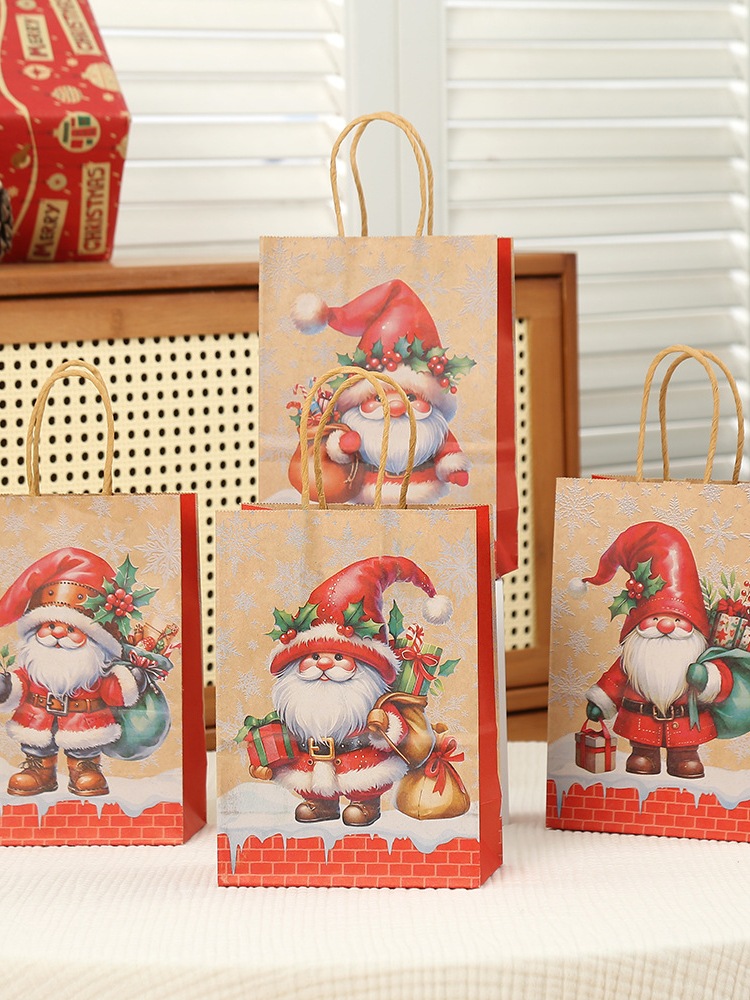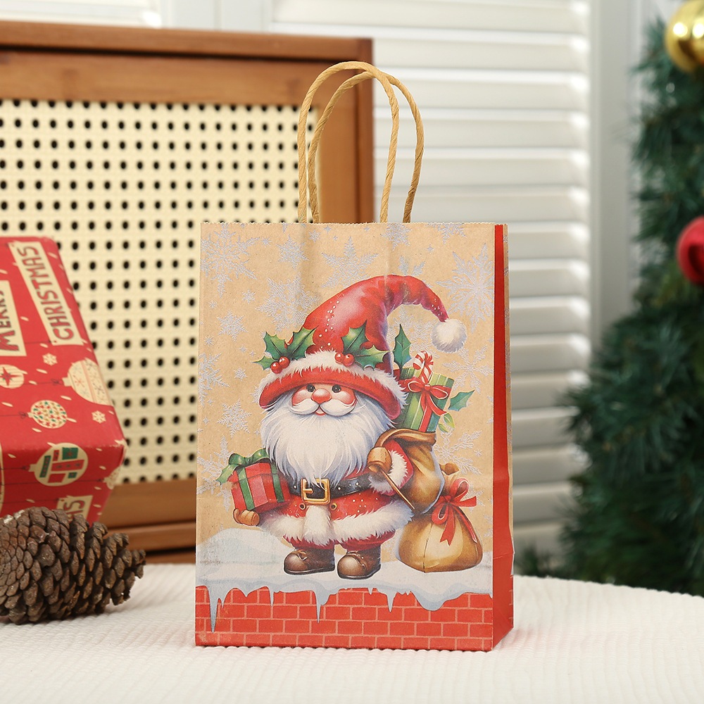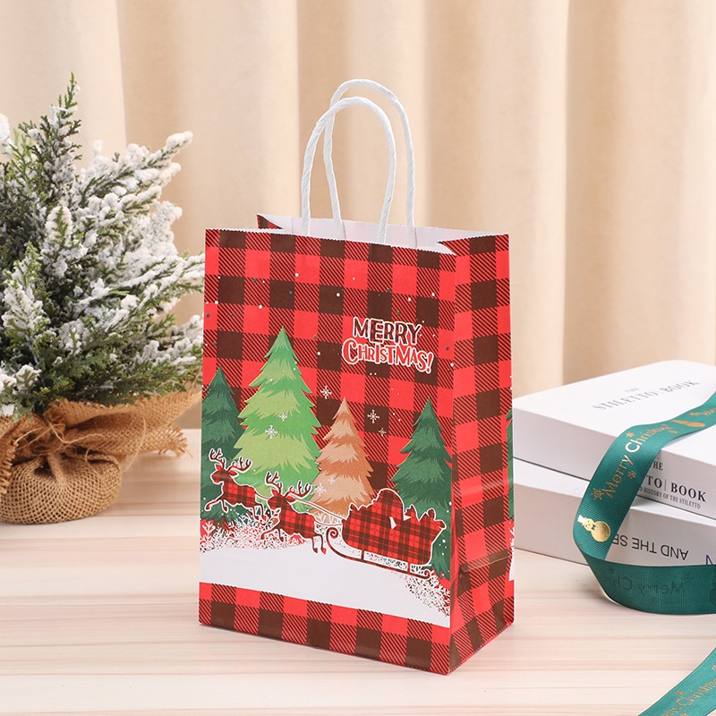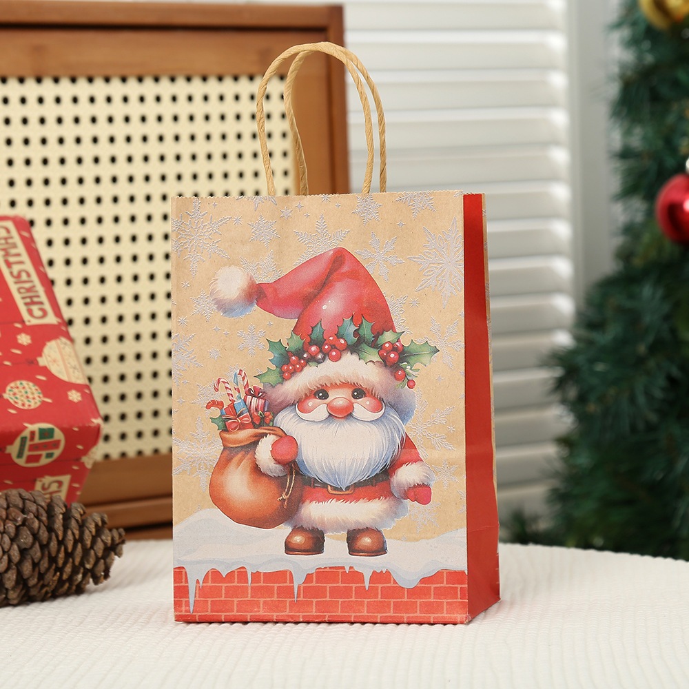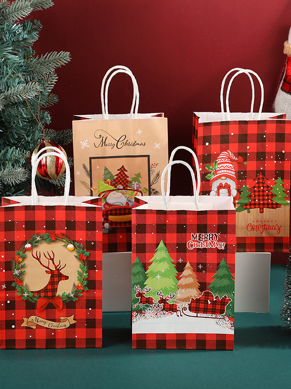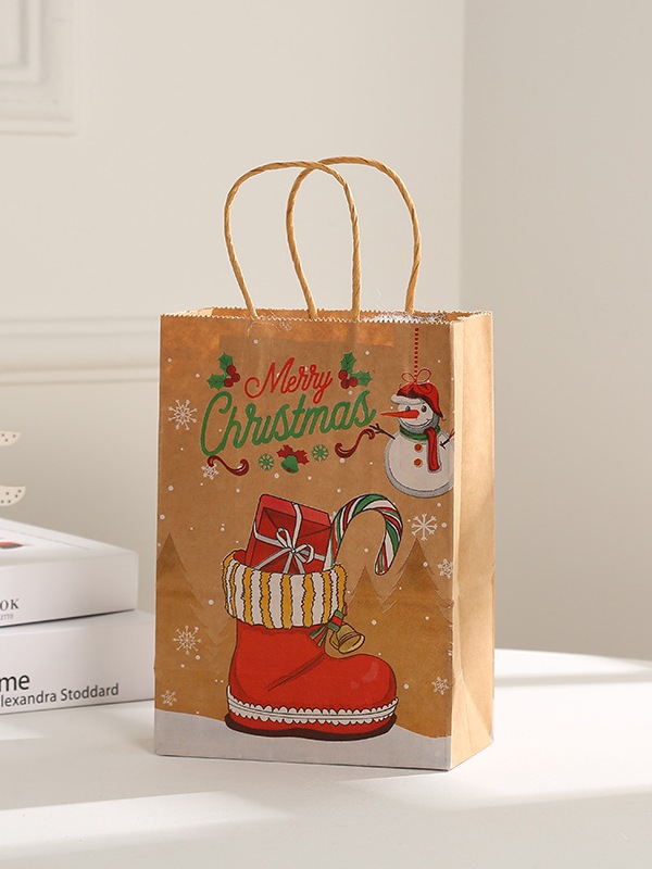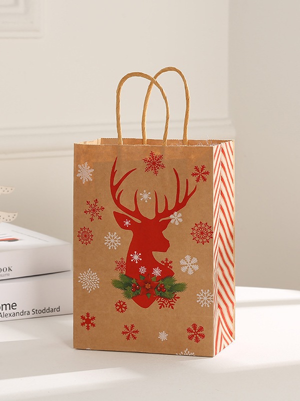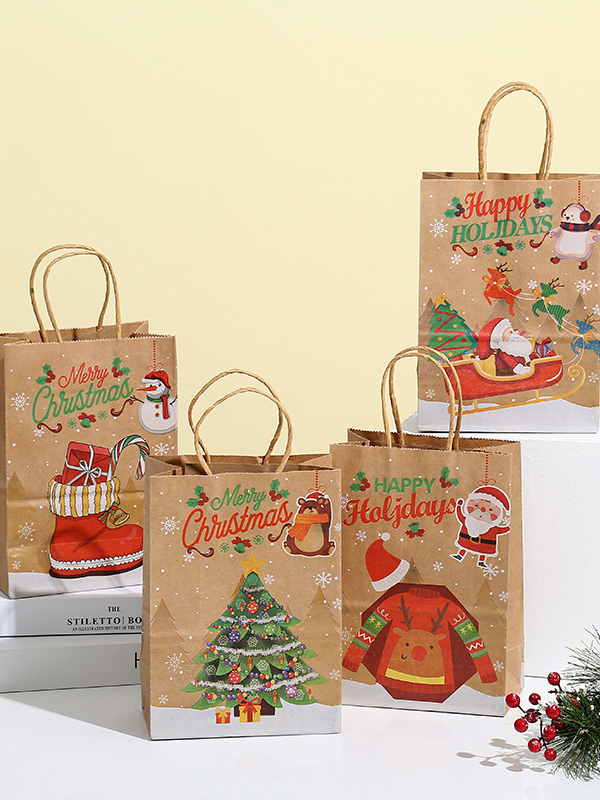 [SG Stock]Christmas Gift Bags Kraft Paper Goody Bag Wrapping Paper Bag with Handles