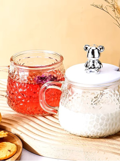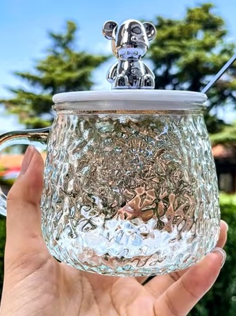 Christmas Giveaways Handgrip Glass Tea Cup Cute Coffee Mug Gift Box Set For Girls