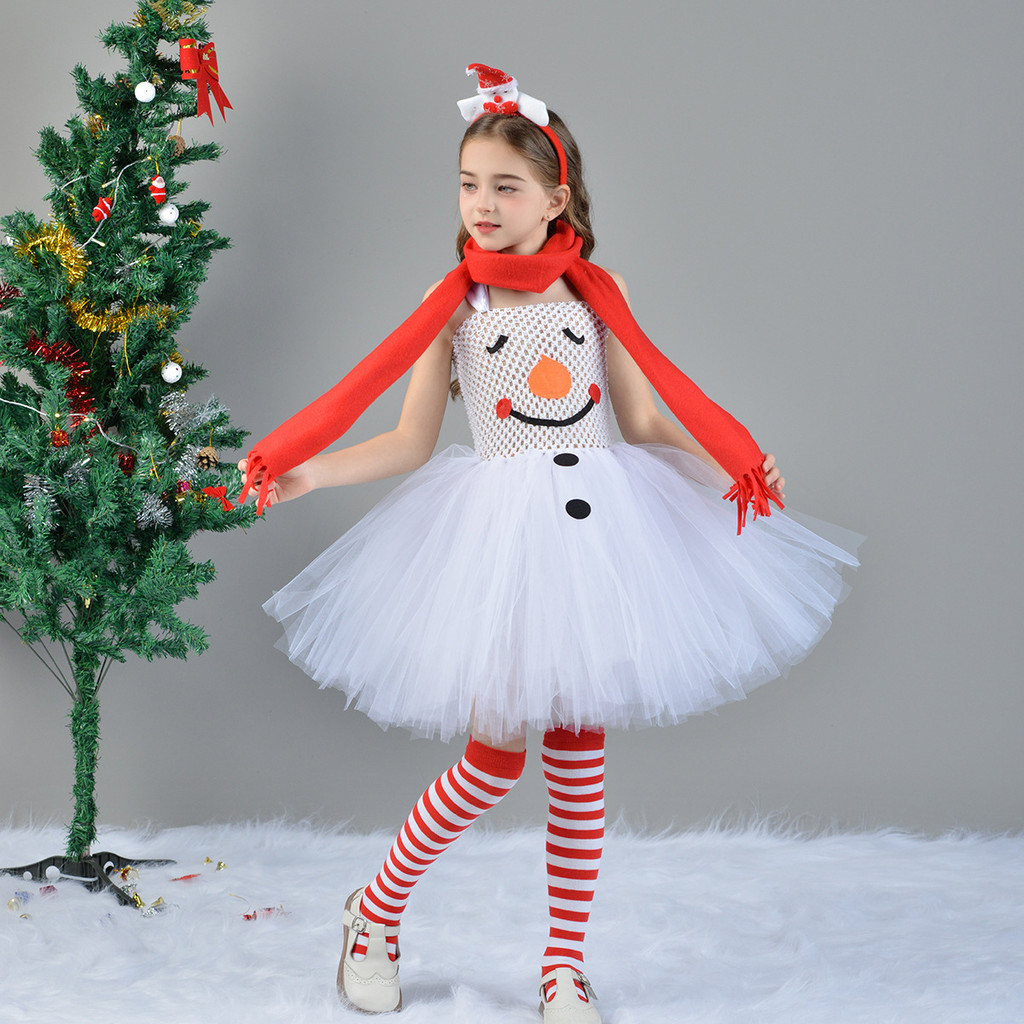 Christmas Snowman cos White Girls Dress Snow Treasure cos Clothes Christmas Party Clothes 4-Piece Set