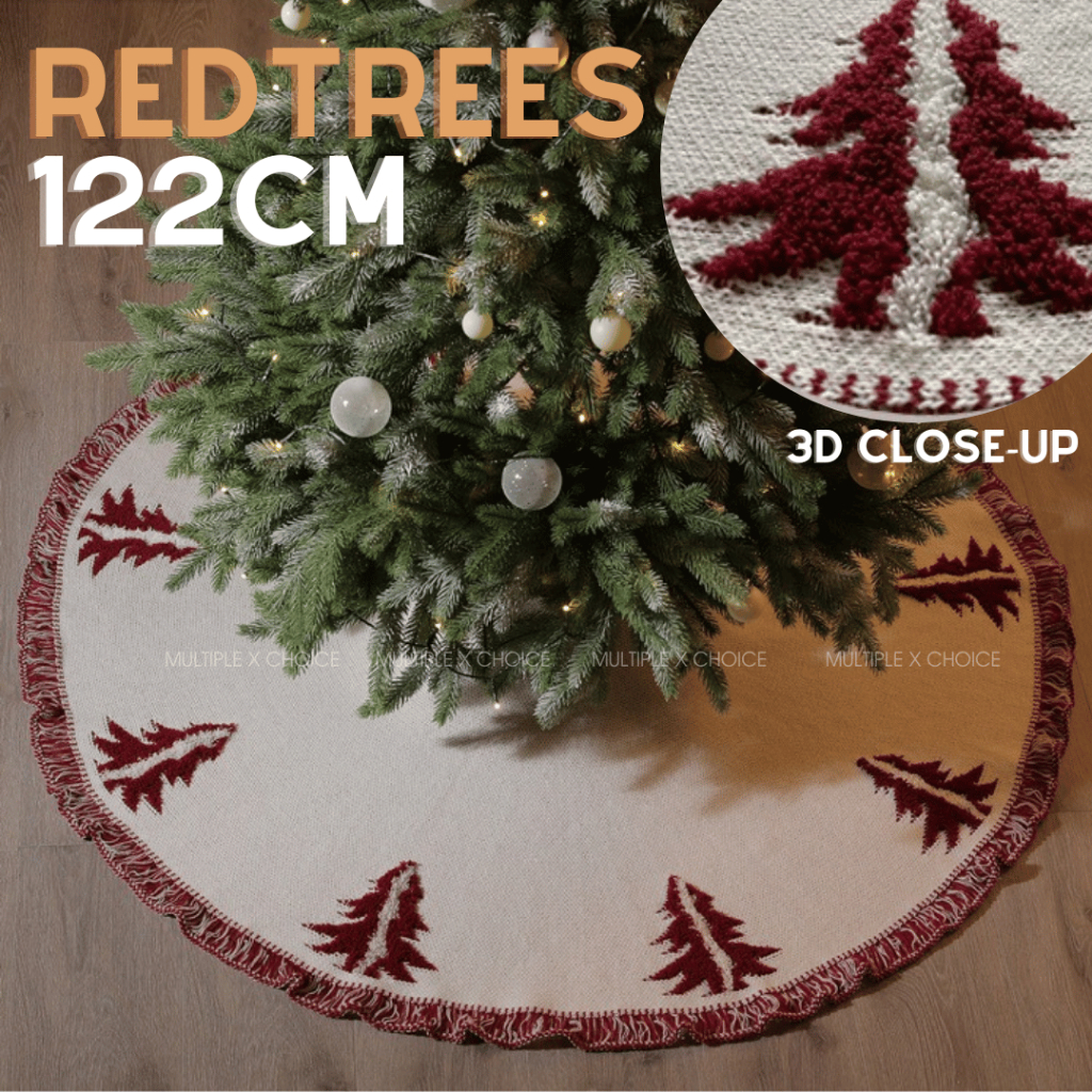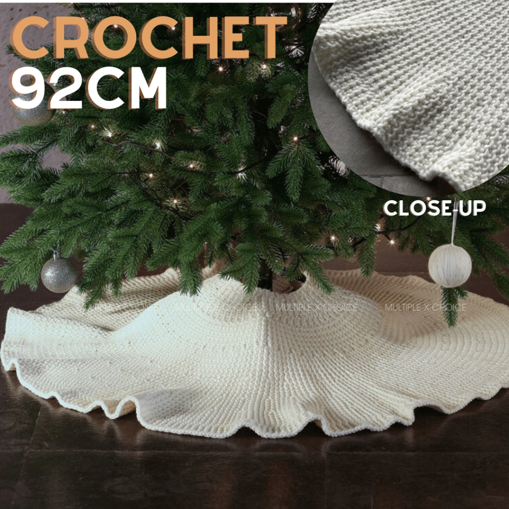 Christmas Tree Skirt Fur Cover Knitted Crochet Xmas Base Floor Carpet Mat Festive Display Foot
