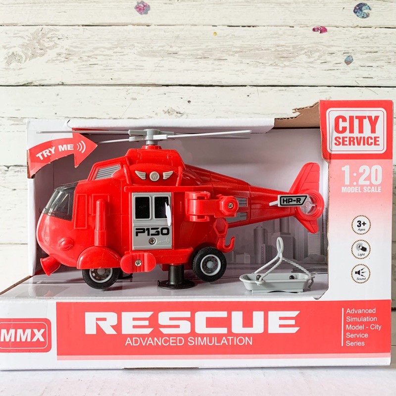 City service Fire Rescue Helicopter with Light and Sound Helicopter Toy
