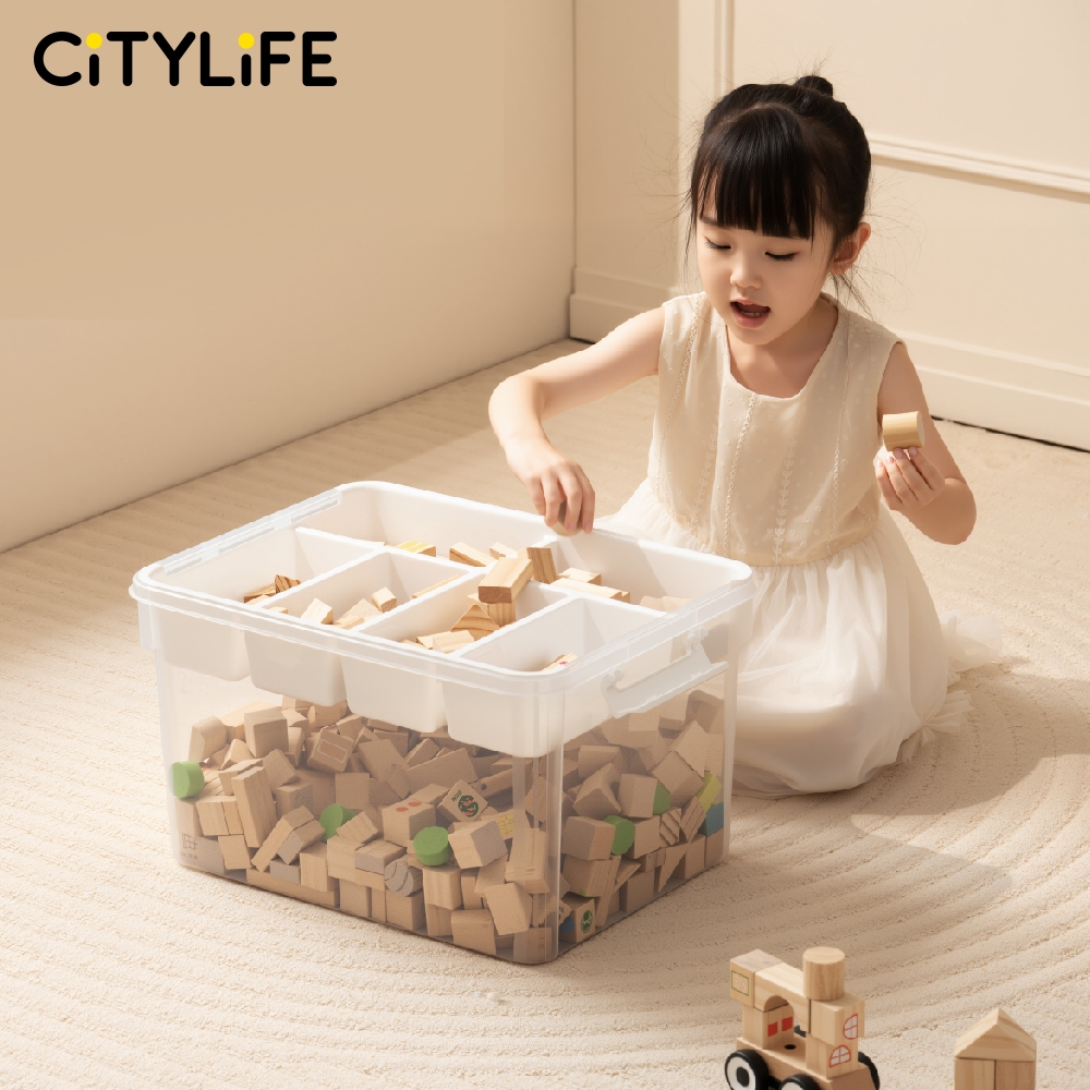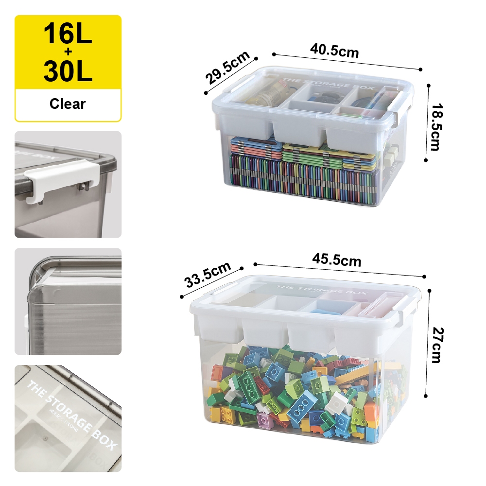 Citylife 16L/43L Transparent Organizer Stackable Storage Container Box With Extra Compartment Tray X-60111218