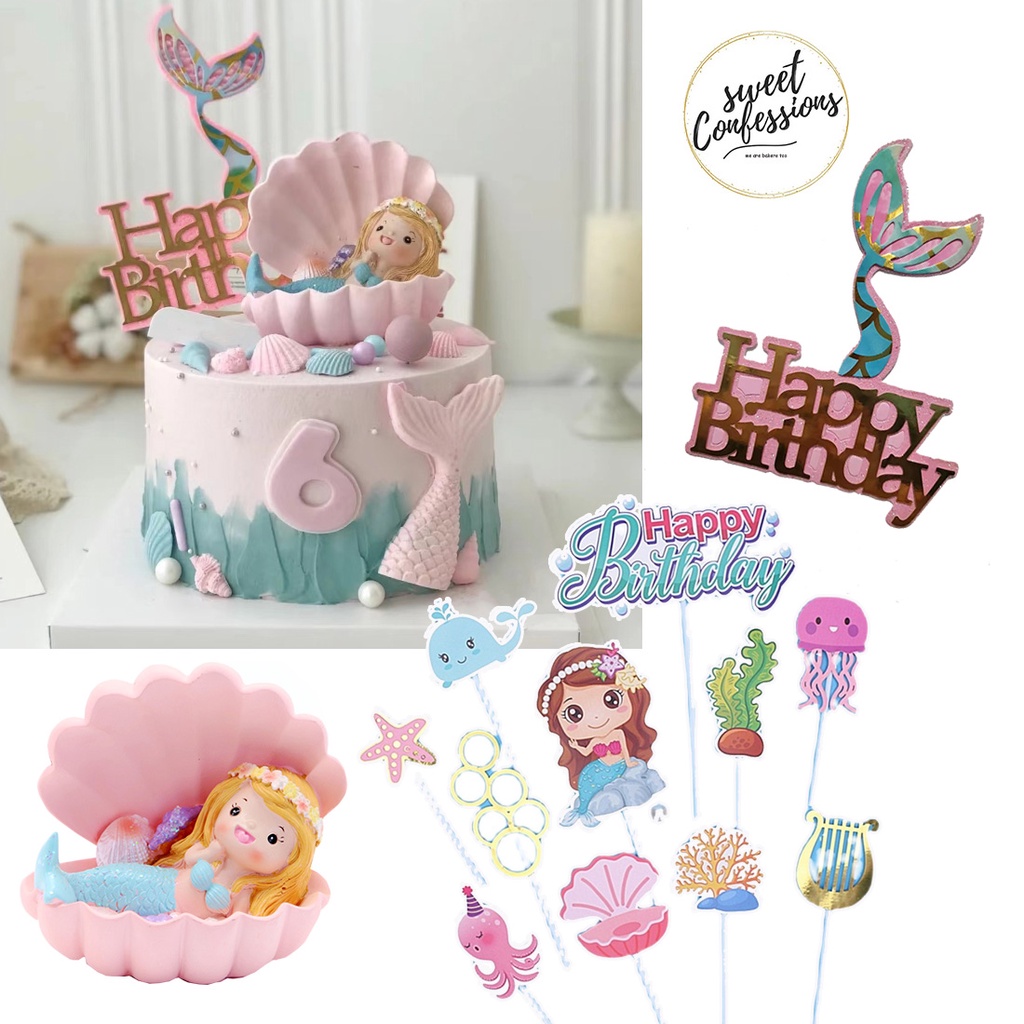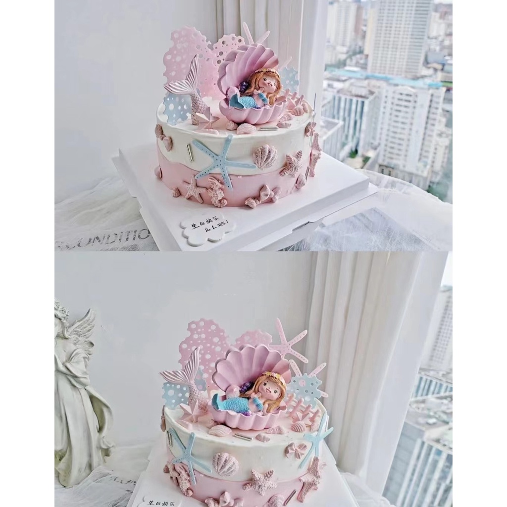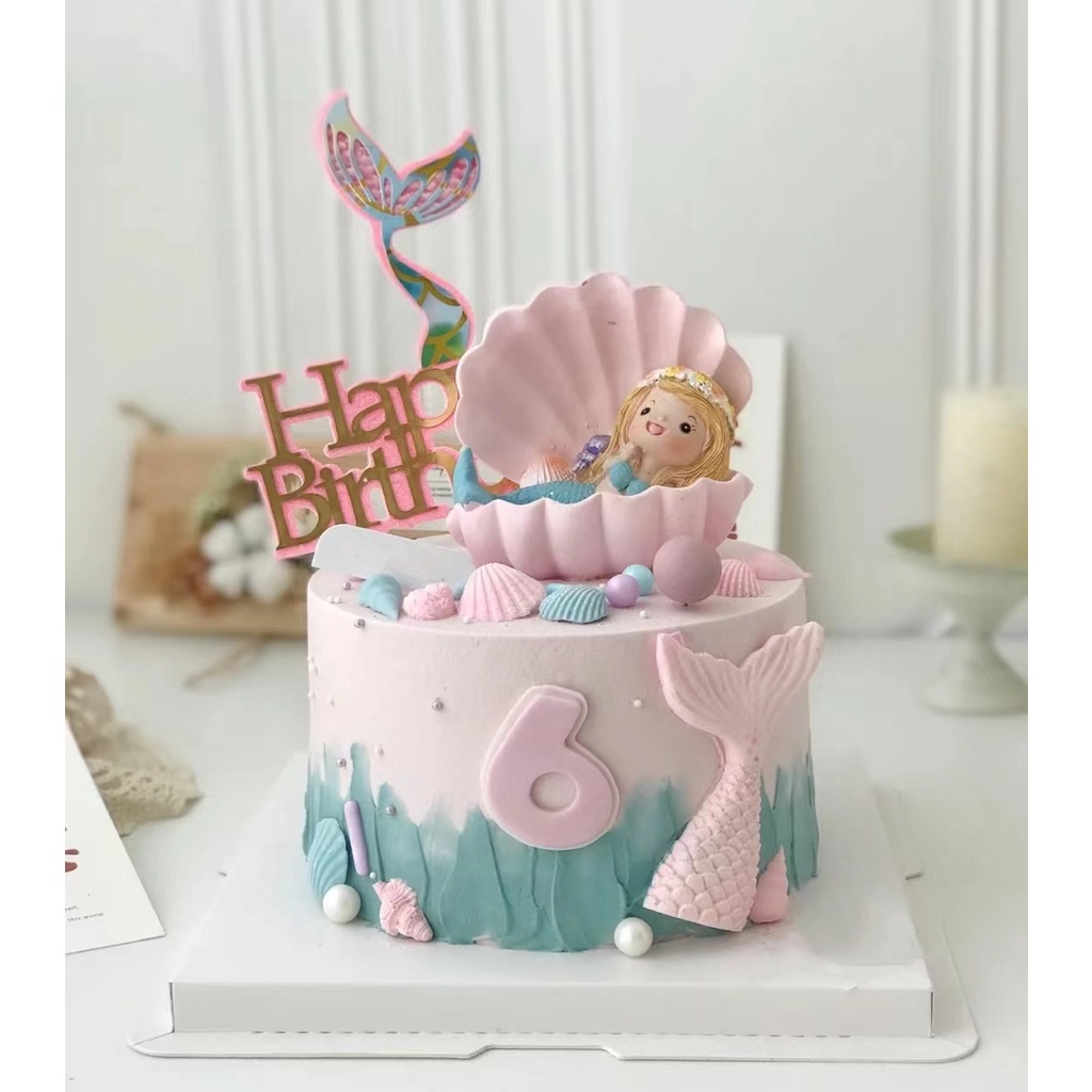 Clam shell mermaid princess cake topper decoration for girl birthday cake cupcake stand