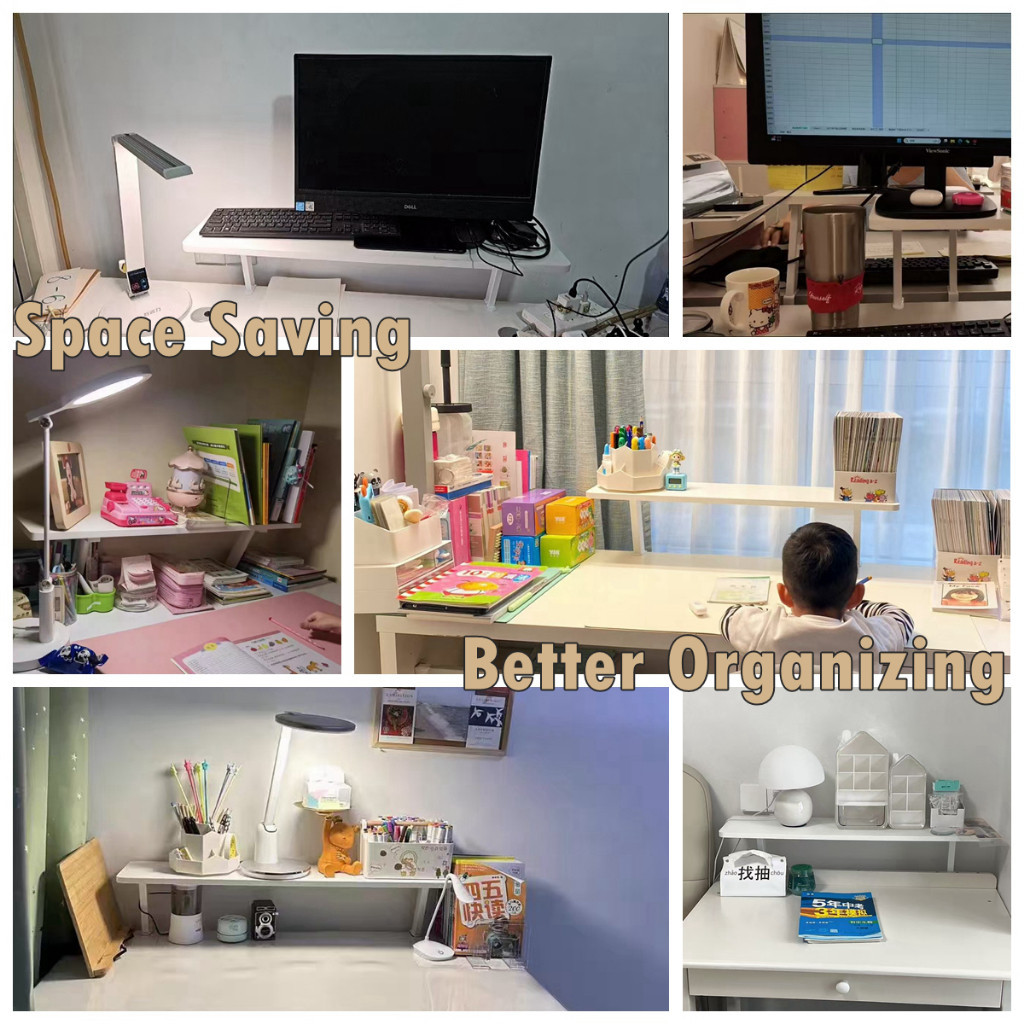Clamp-On Monitor Riser & Elevated Desk Storage Rack, Floating Desktop Bookshelf | Strong Iron Legs
