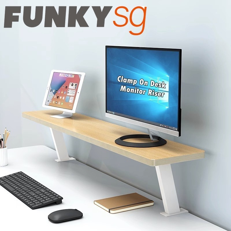 Clamp-On Monitor Riser & Elevated Desk Storage Rack, Floating Desktop Bookshelf Available in 40/60/80/100/120cm
