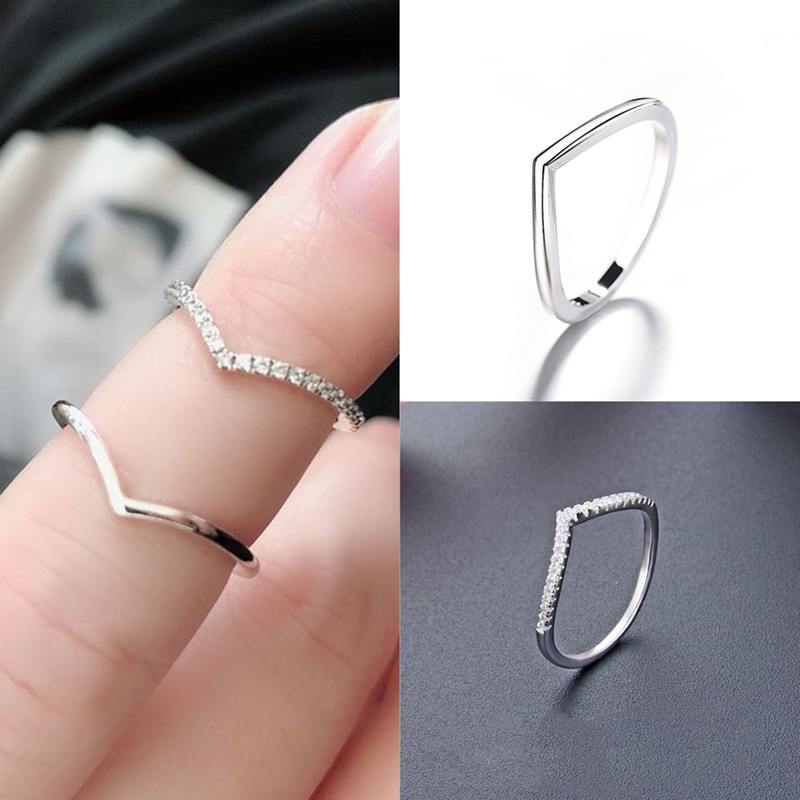 Classic V shape Ring Promise Ring 925 Silver Wedding Engagement Ring Cubic Zirconia Diamond Ring