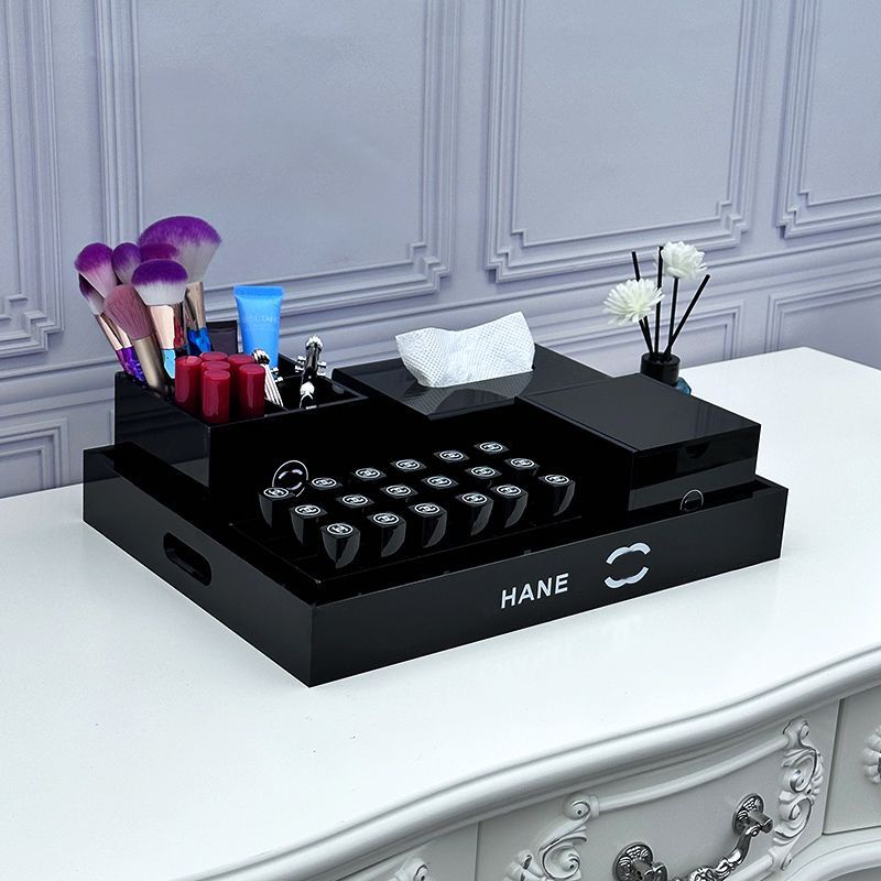 Classic desktop acrylic tray Cosmetics storage box Large capacity lipstick makeup brush box Desktop storage box Large tray Lipstick storage box Cotton label box Powder storage box