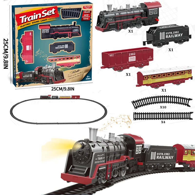 Classical railway freight train set Electrical water steam locomotive toy set with smoke simulation model electric train
