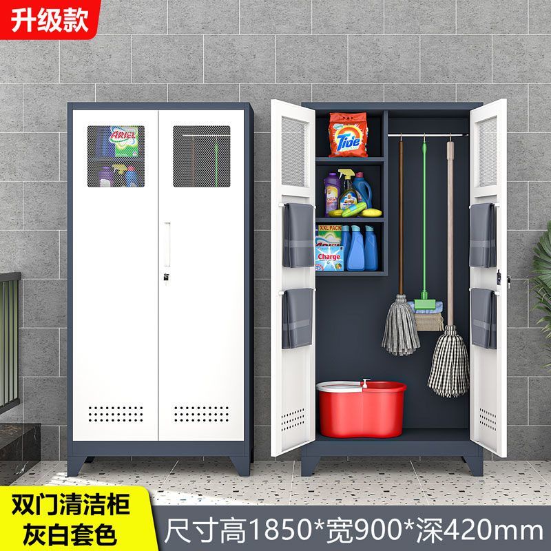 Cleaning Cabinet Balcony Mop Cabinet Wire-Wrap Board Housekeeping Tools Cleaning Cabinet Double Door Sanitary Cabinet Broom Mop Storage Cabinet