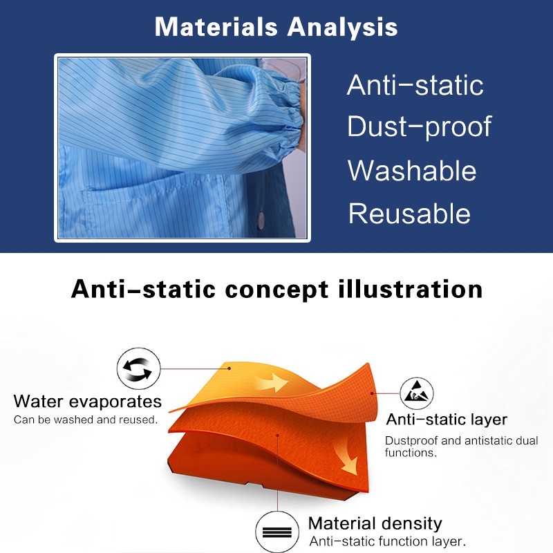 Cleanroom Suit Washable ESD Smock PPE Gown Washable Suit Anti Static White Lab Coat Work Jacket Workwear