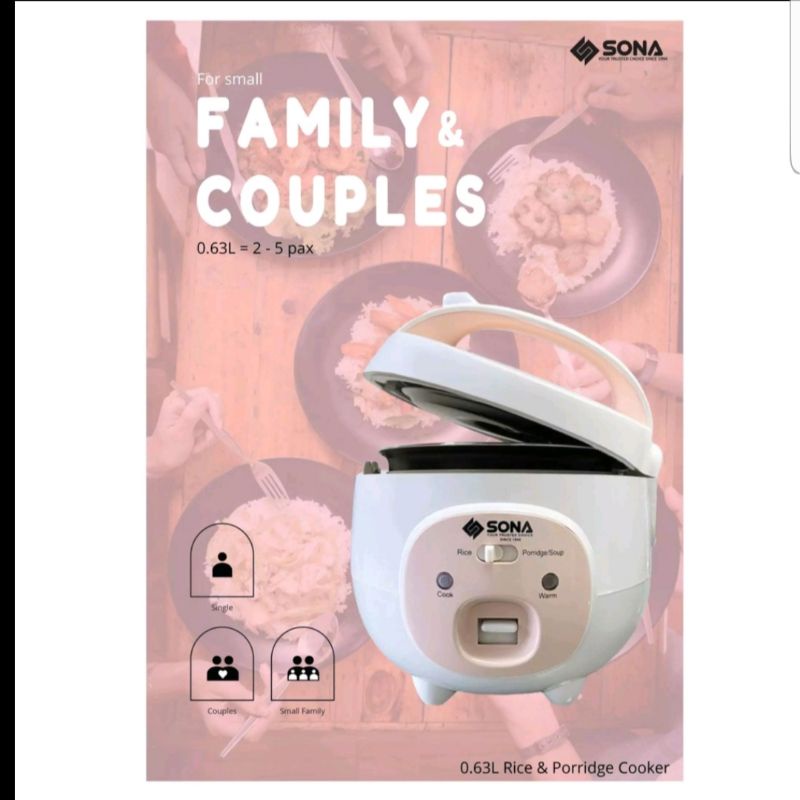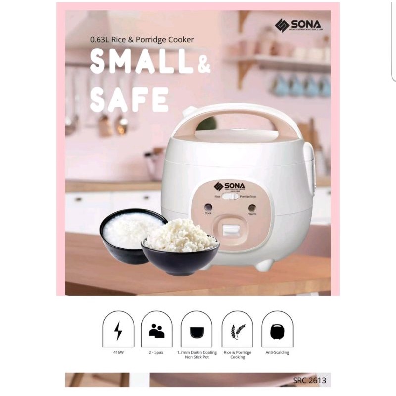 SONA 0.63L Rice & Porridge Cooker SRC 2613 | SRC2613 (3 Years Electrical Parts Warranty0