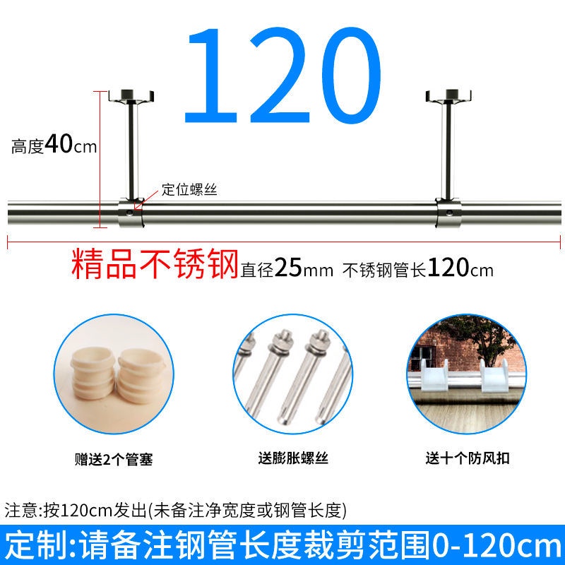 Clothes rod thickened stainless steel balcony fixed top-mounted clothes drying rack single and double clothes rod household indoor clothes rod