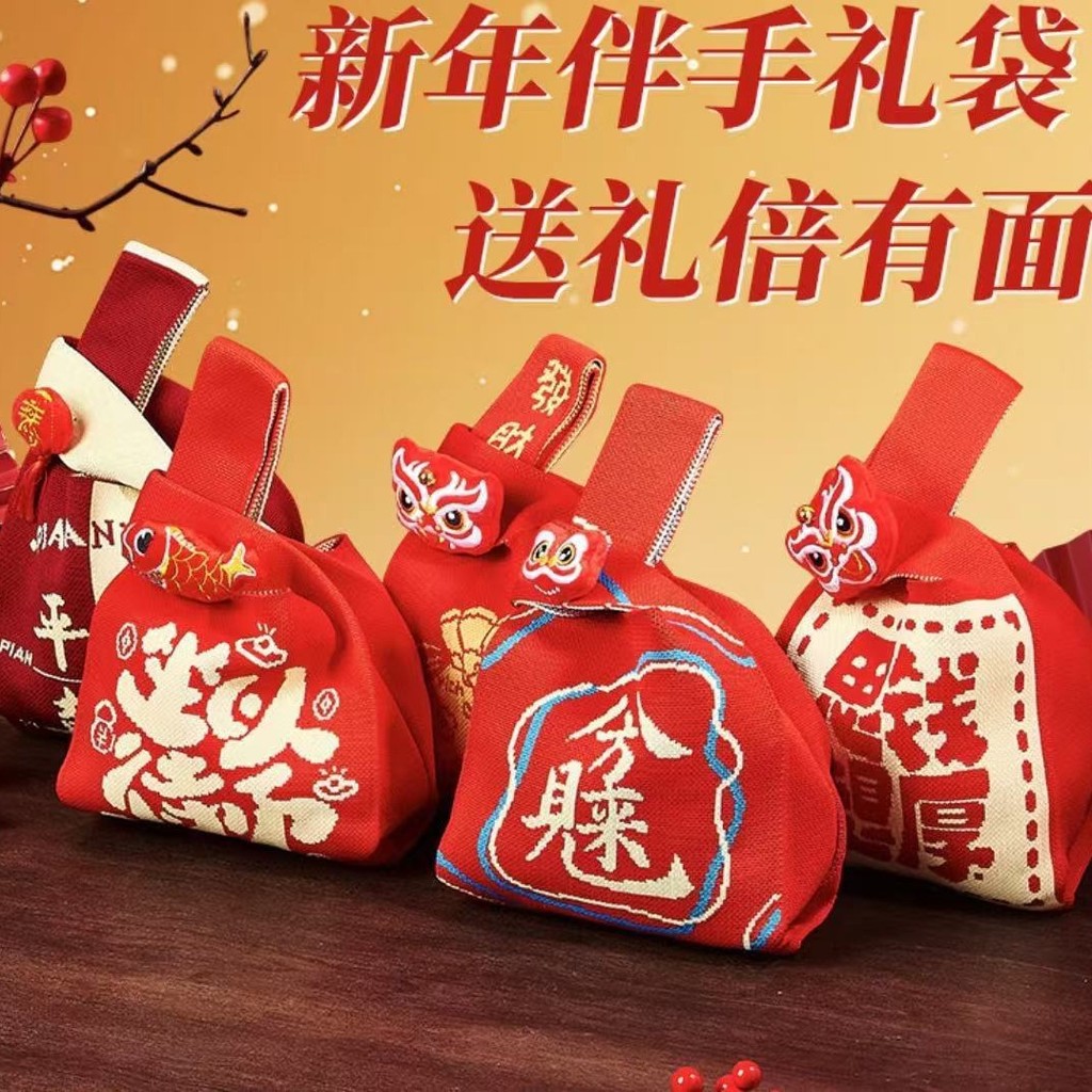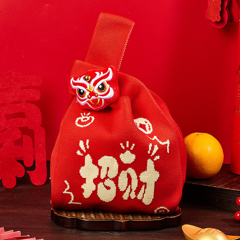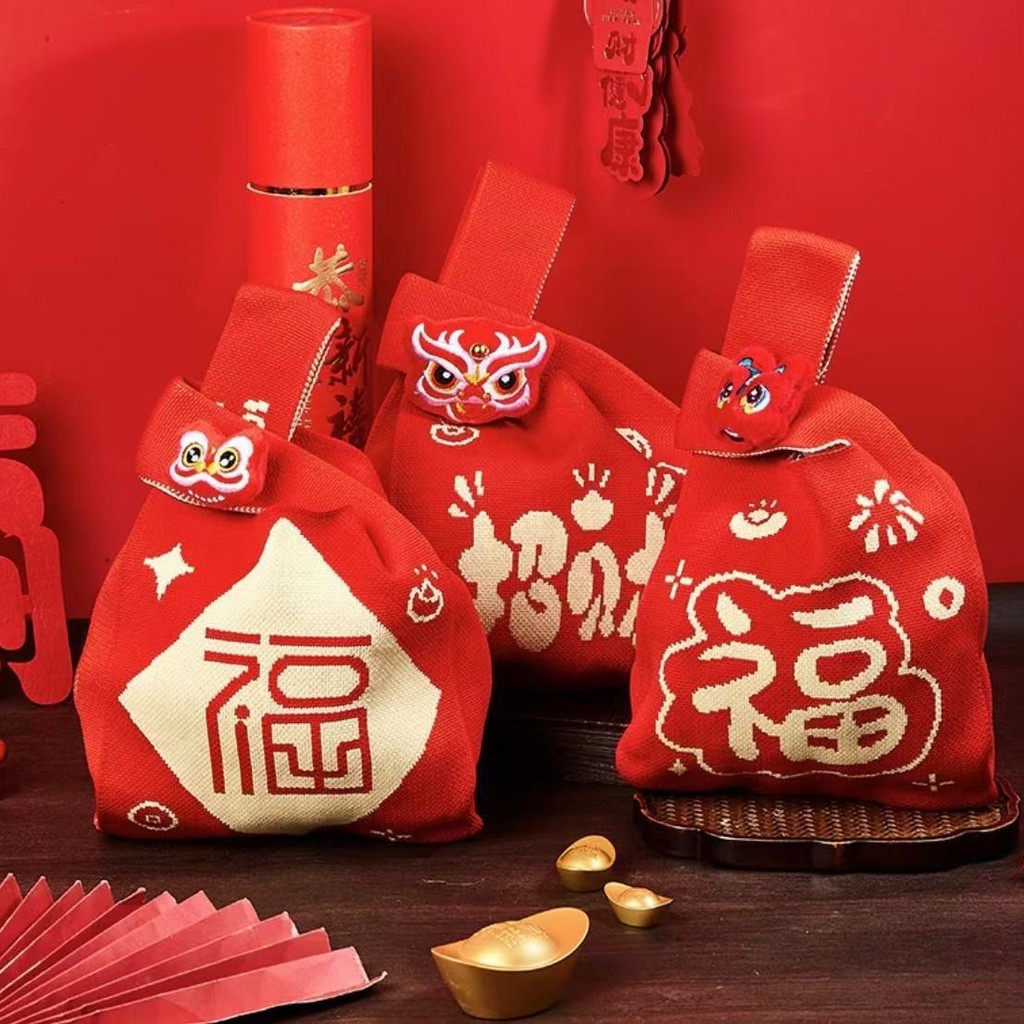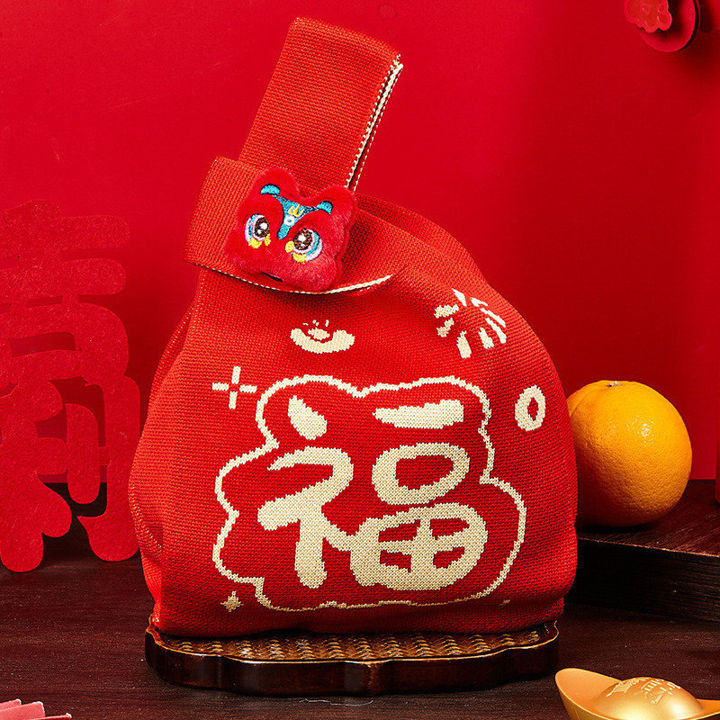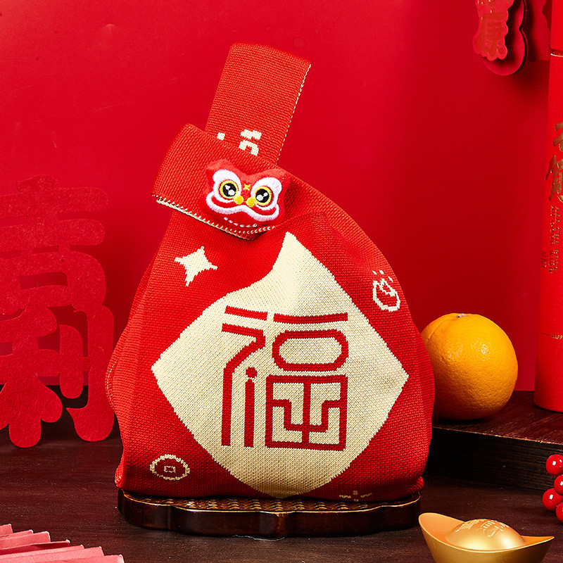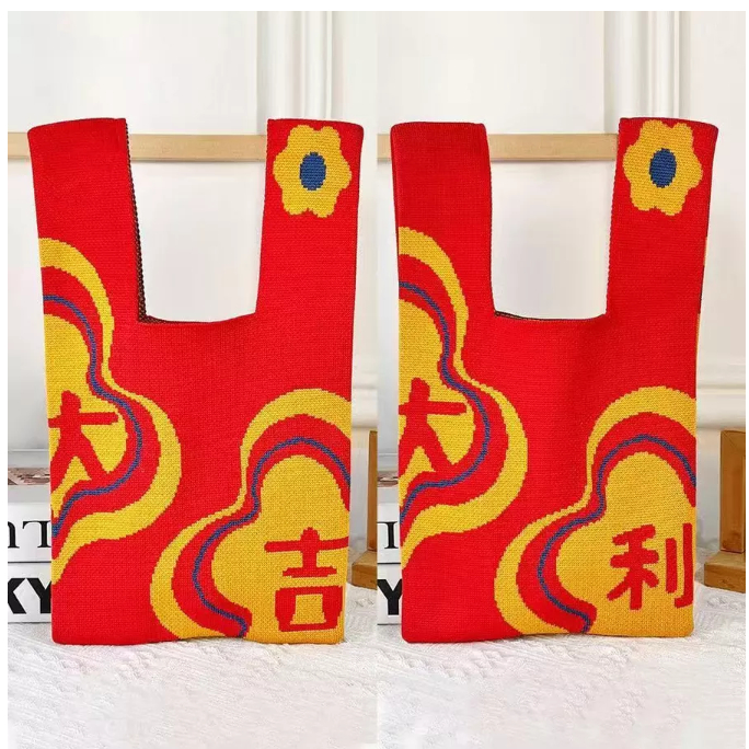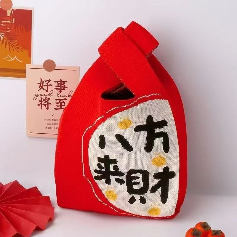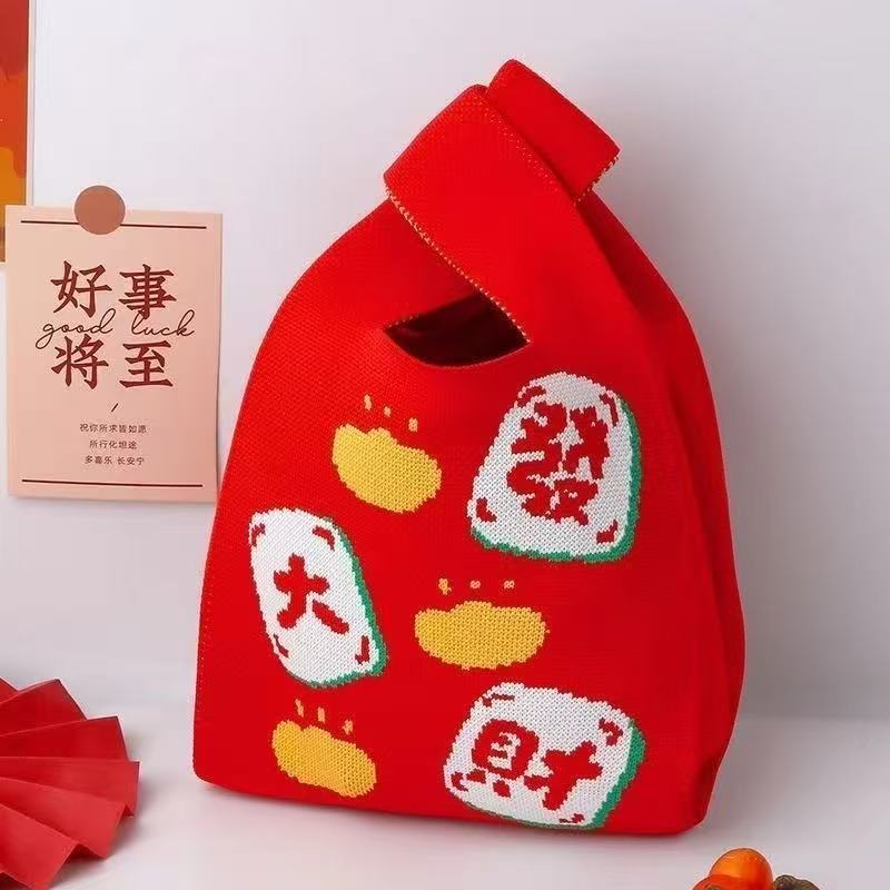 Cny Bag Orange Bag New Year Style Red Knitted Bag Company Annual Meeting Gift Bag Handbag Wedding Souvenir Handbag Wedding Candy Bag