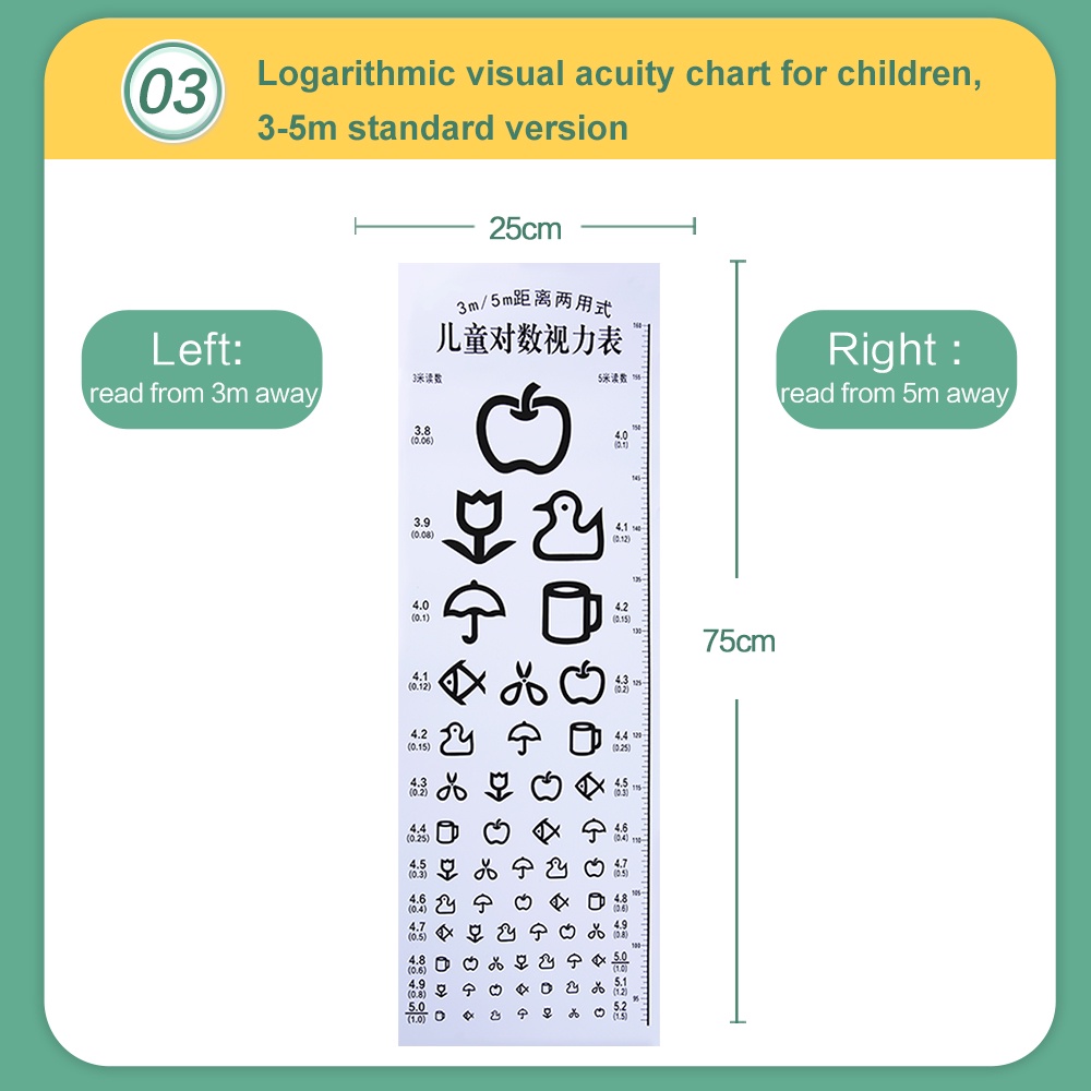 Cofoe Waterproof PVC Eye Chart E Type Farsighted Table Eye Logarithmic Vision Acuity Test Chart with Height Measure